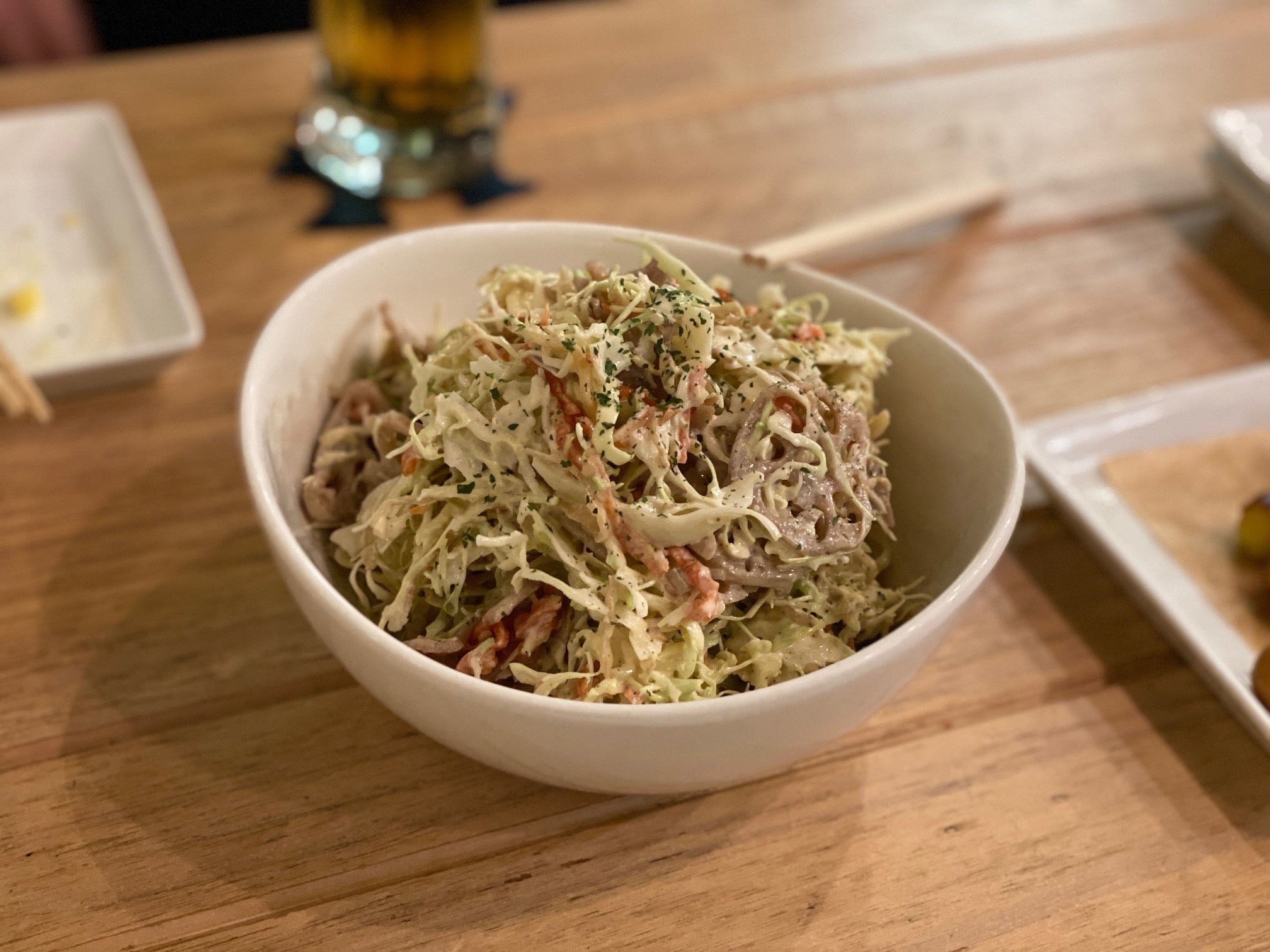 これがよかったー! キャベツやれんこんのサラダ。味付けが最高!