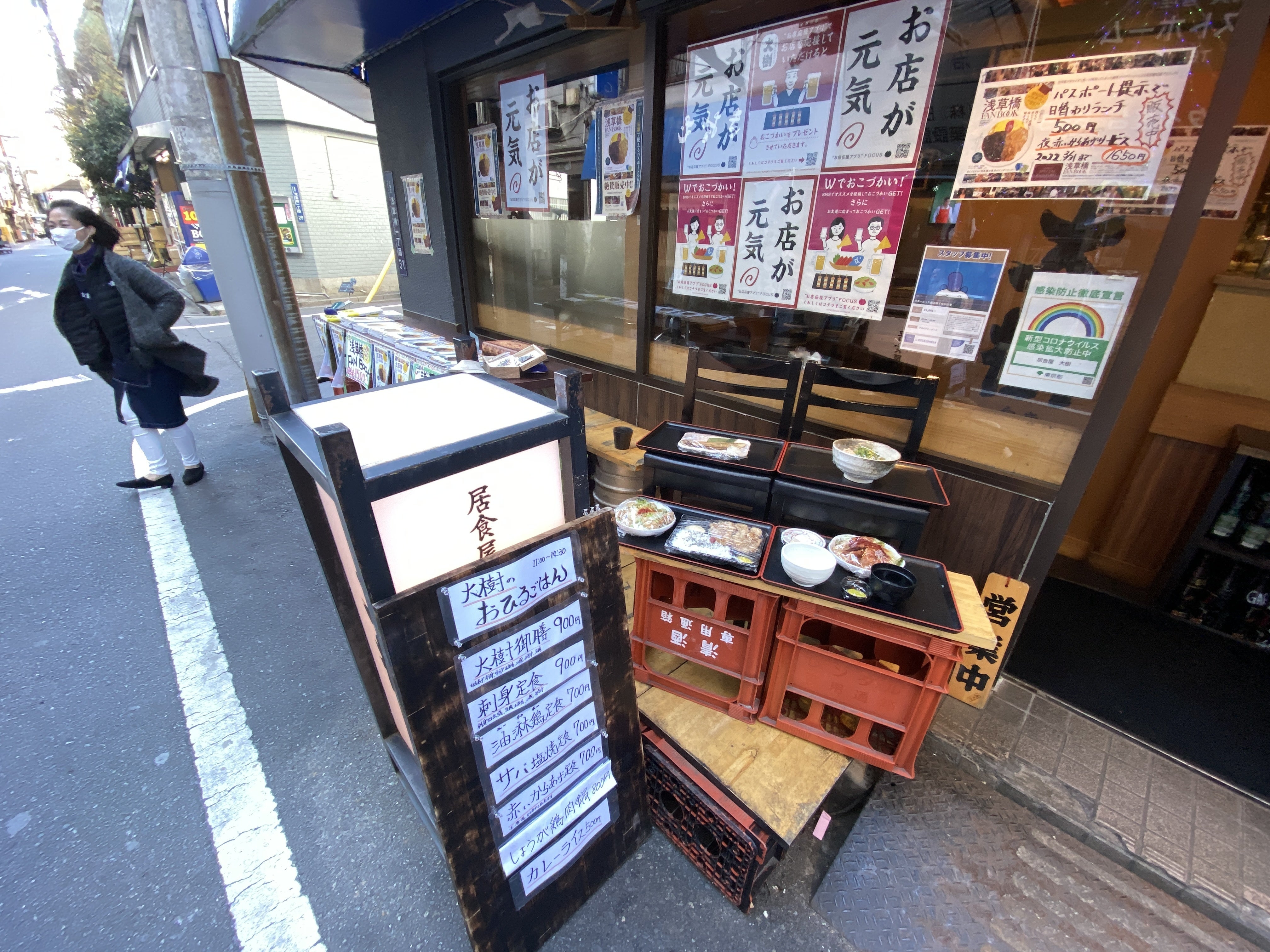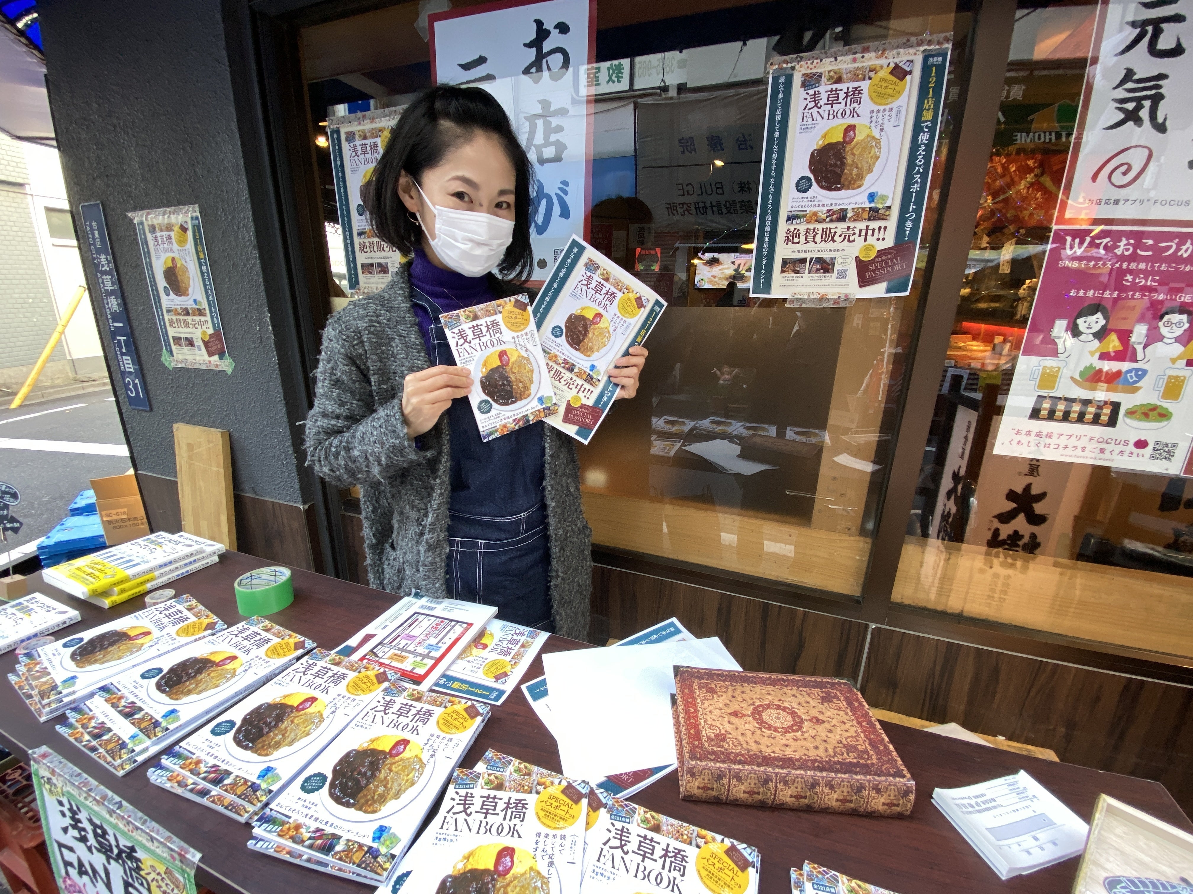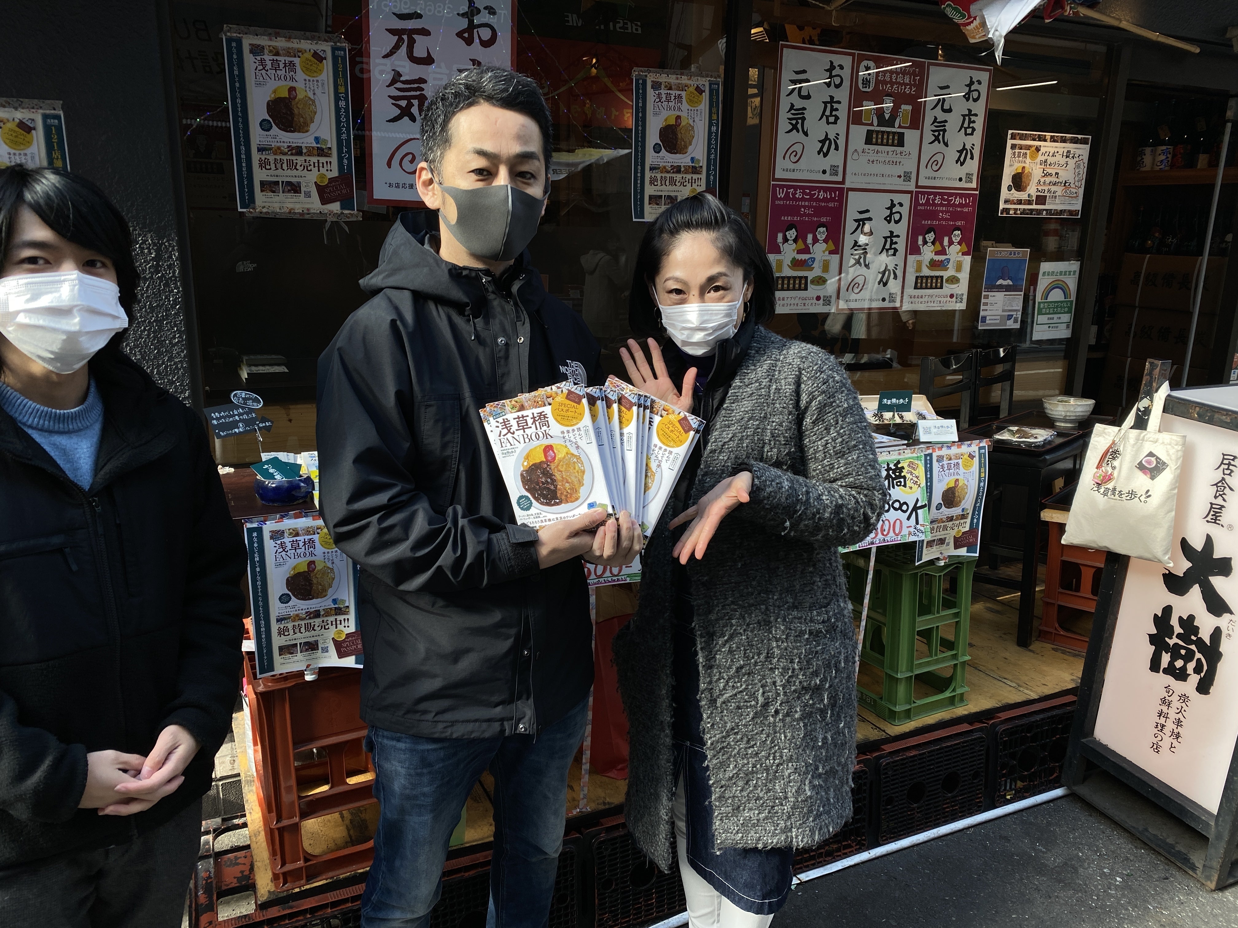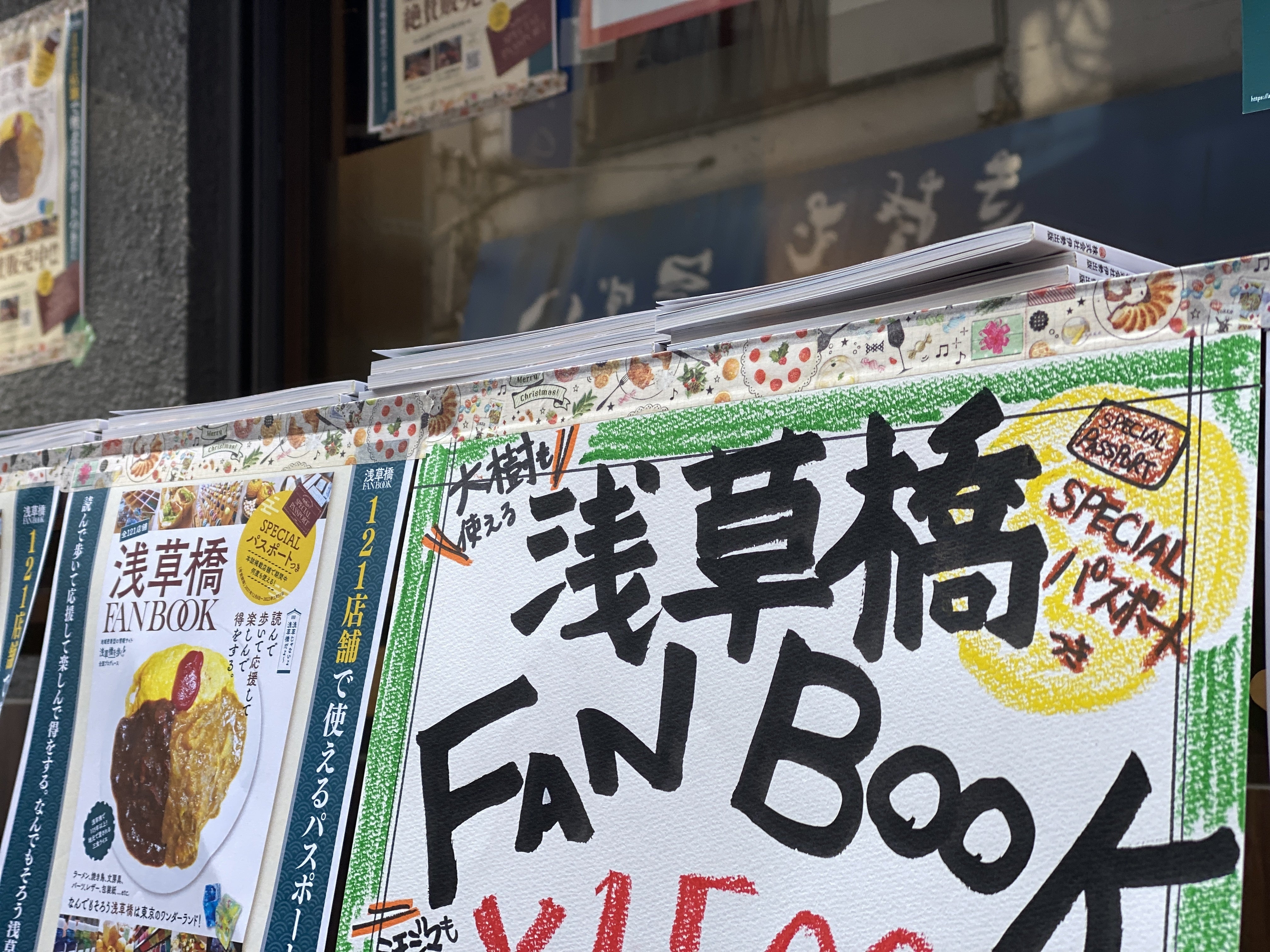 どどん!! ということで、我らが浅草橋の大衆酒場「居食屋 大樹」の店頭をお借りして、即席の浅草橋FANBOOK販売ブースをつくってみました!