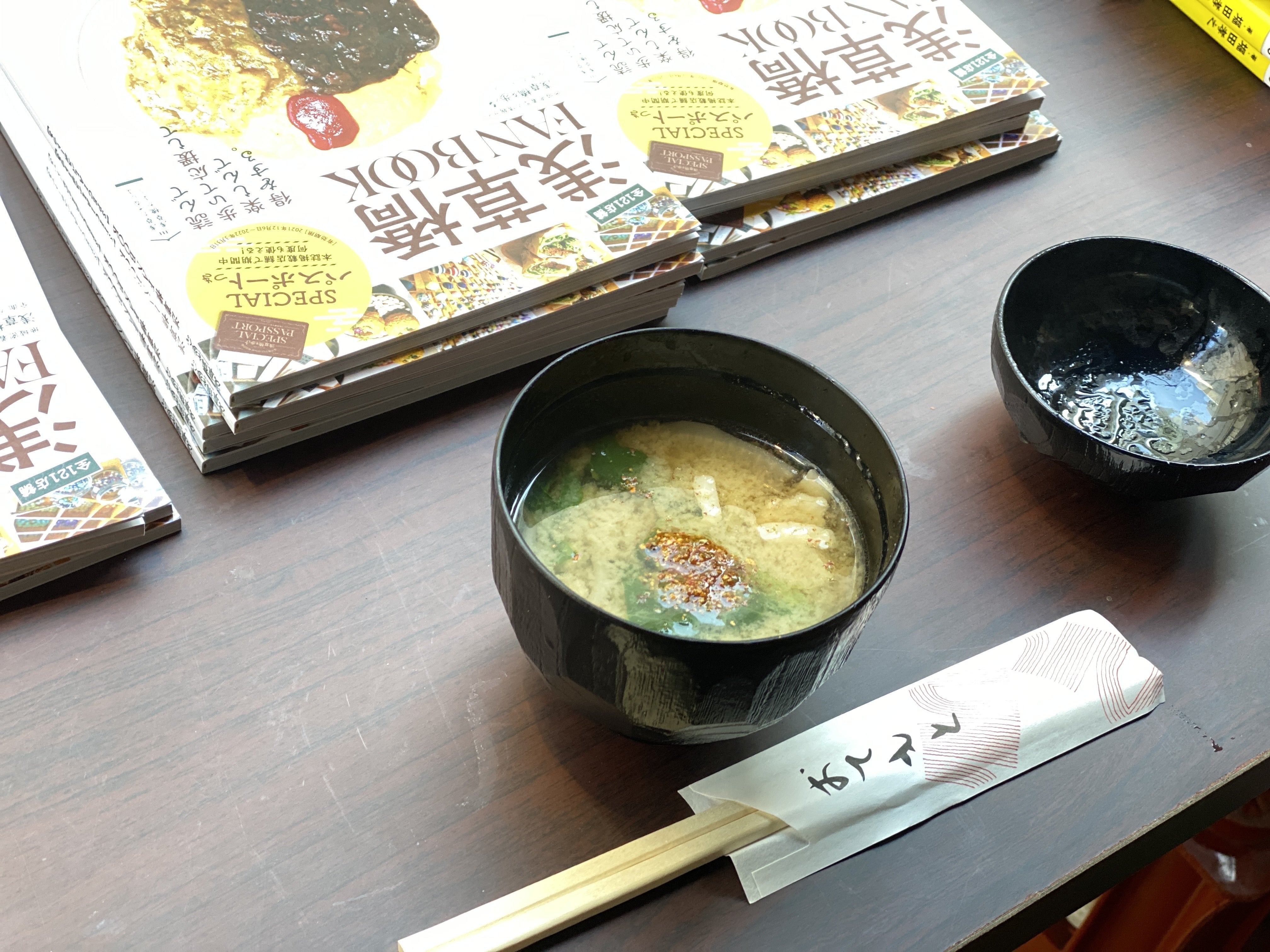 大樹の右斜め前にある「そば八」の姐さんが、震える我らに見かねたのか、温かいお味噌汁をもってきてくれたのです。すごい! なんという優しさ!! しかもしかもです。「そば八」さんはまだ「浅草橋を歩く。」でも未取材店で、さらに浅草橋FANBOOKにも掲載されていないにもかかわらず、なんという温かいおめぐみ……(涙)。