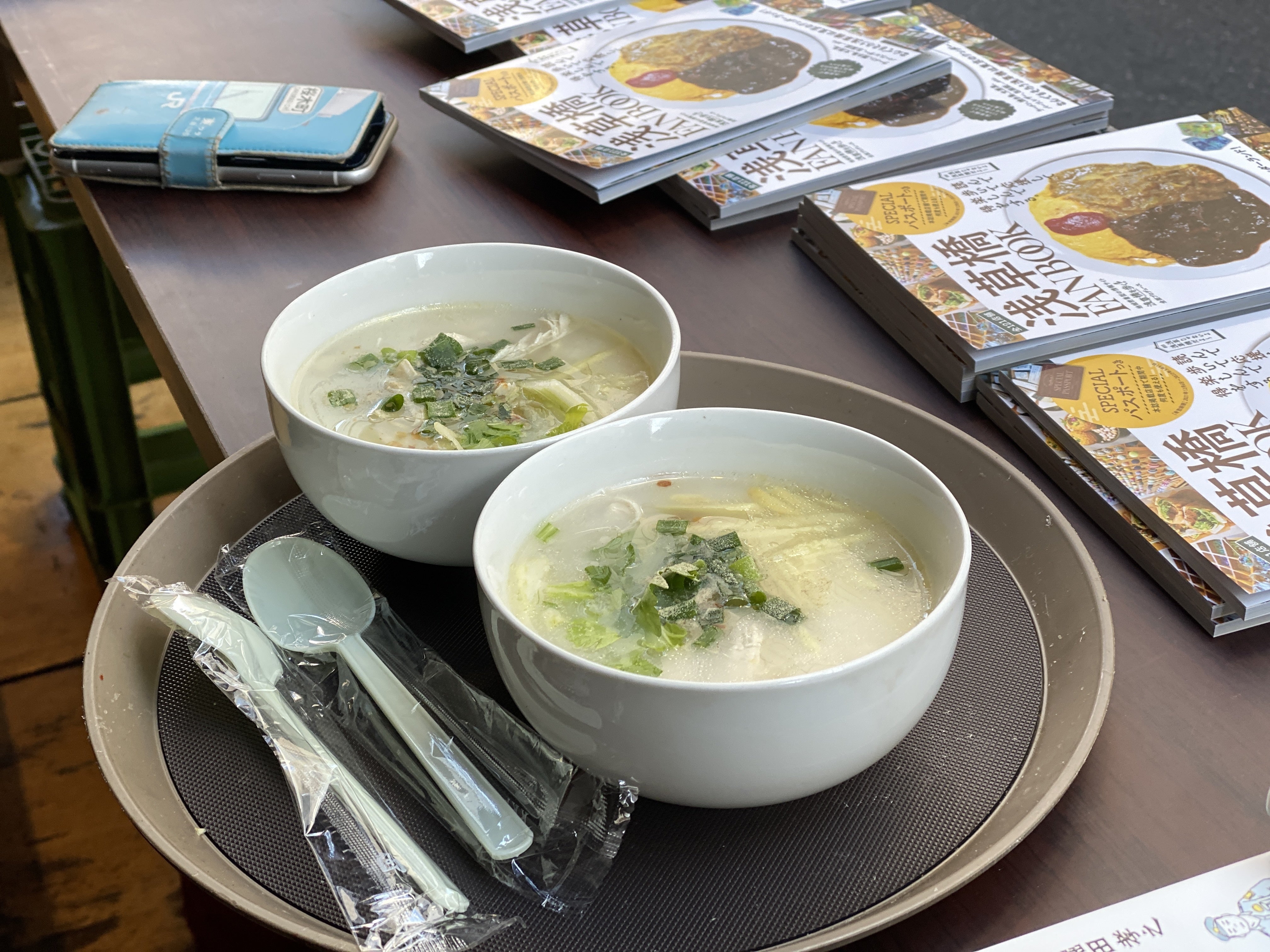 なんと今度は、目の前の「スマイル屋台555」の姐さんが、「あったまったほうがいいよ」と、タイ的おかゆをプレゼントしてくれました。何なの、浅草橋! もう、「温かみ」が凄まじすぎて「震える」……。