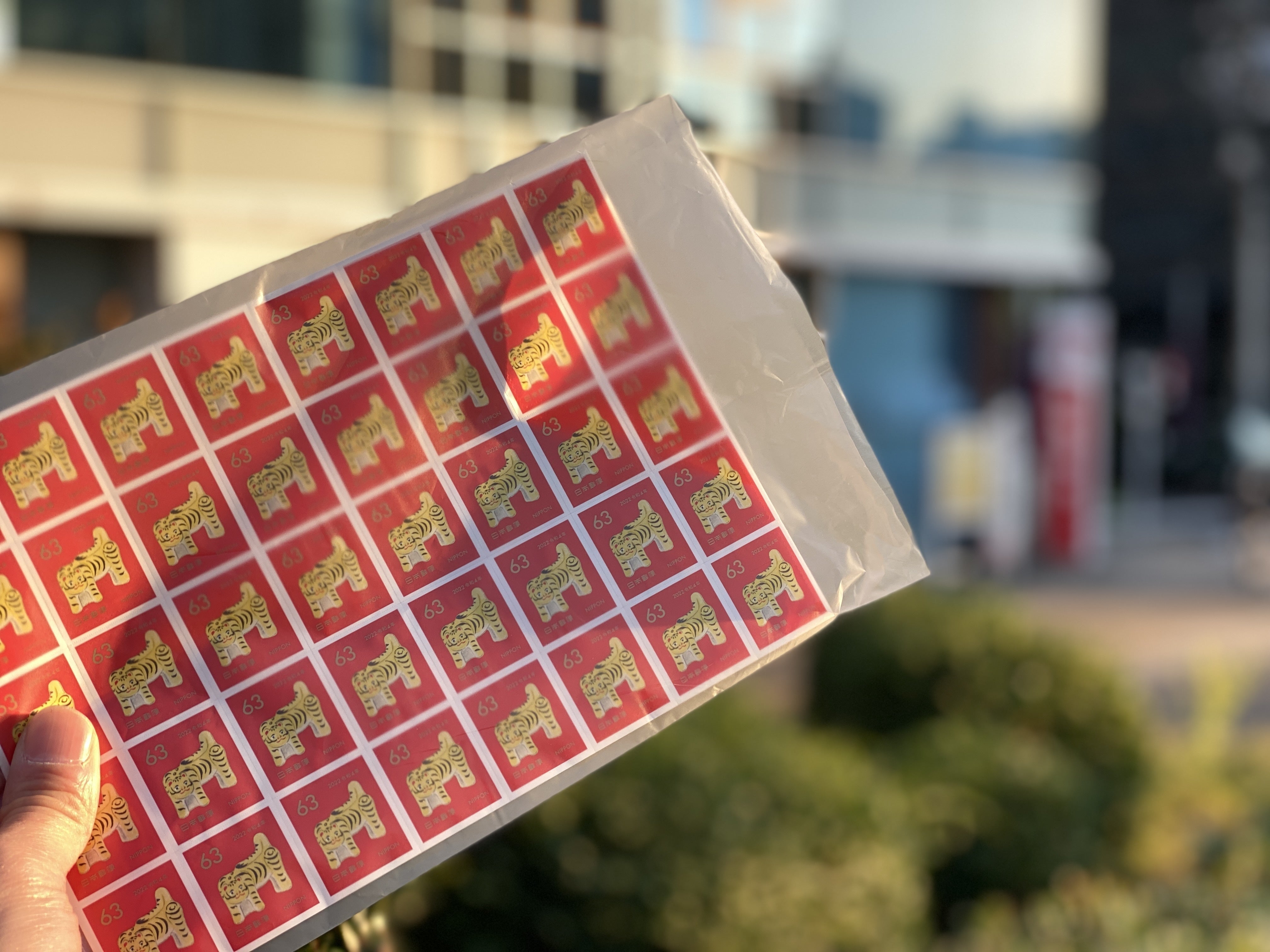 「浅草橋」を渡ったところにある「両国郵便局」で、寅年の年賀切手を購入してみたり……。