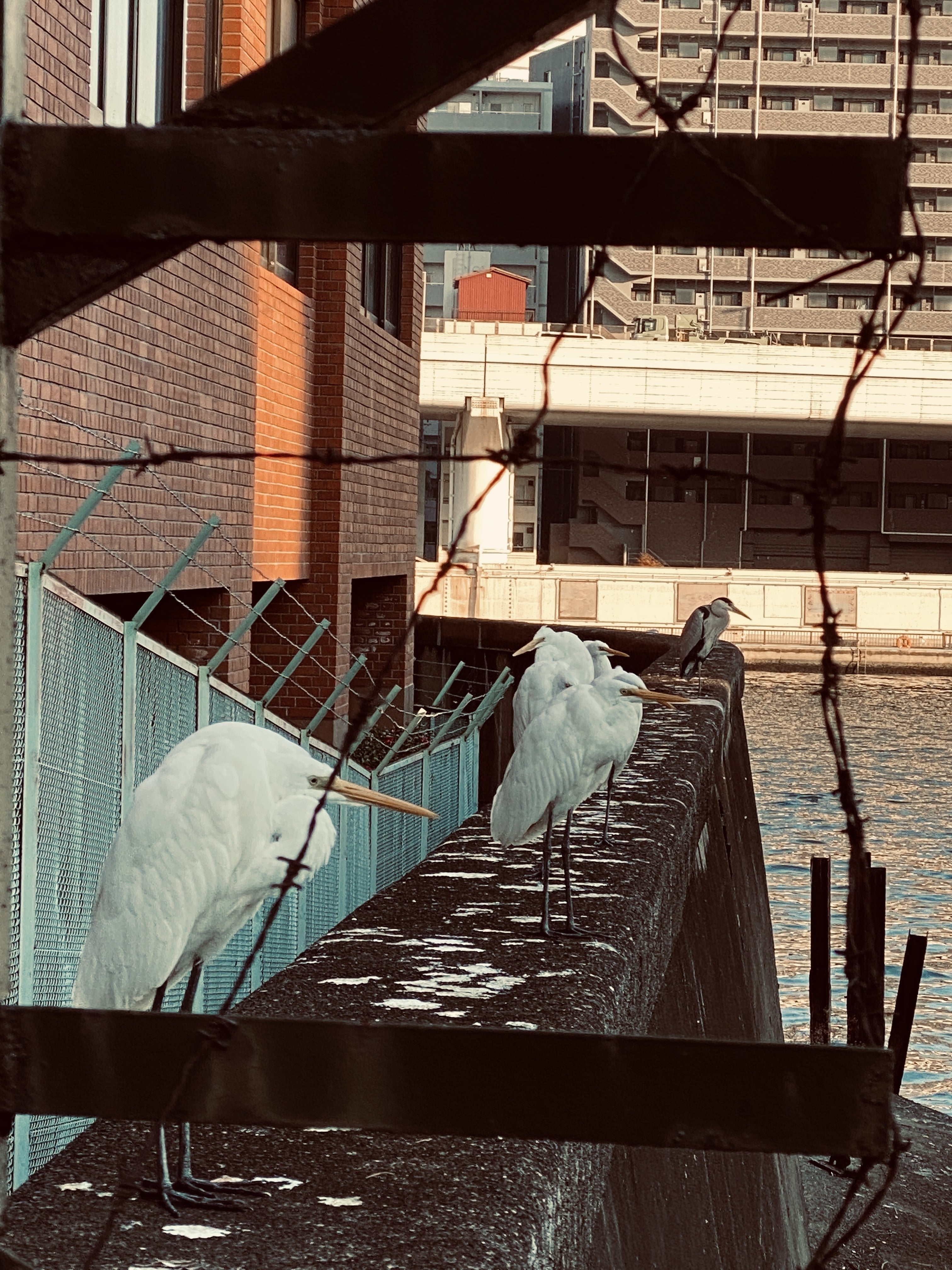 柳橋で休憩していたサギ?の集団に驚愕し、Twitterで投稿したら鳥愛好家の方々からたくさんの「いいね」をいただいたり……。