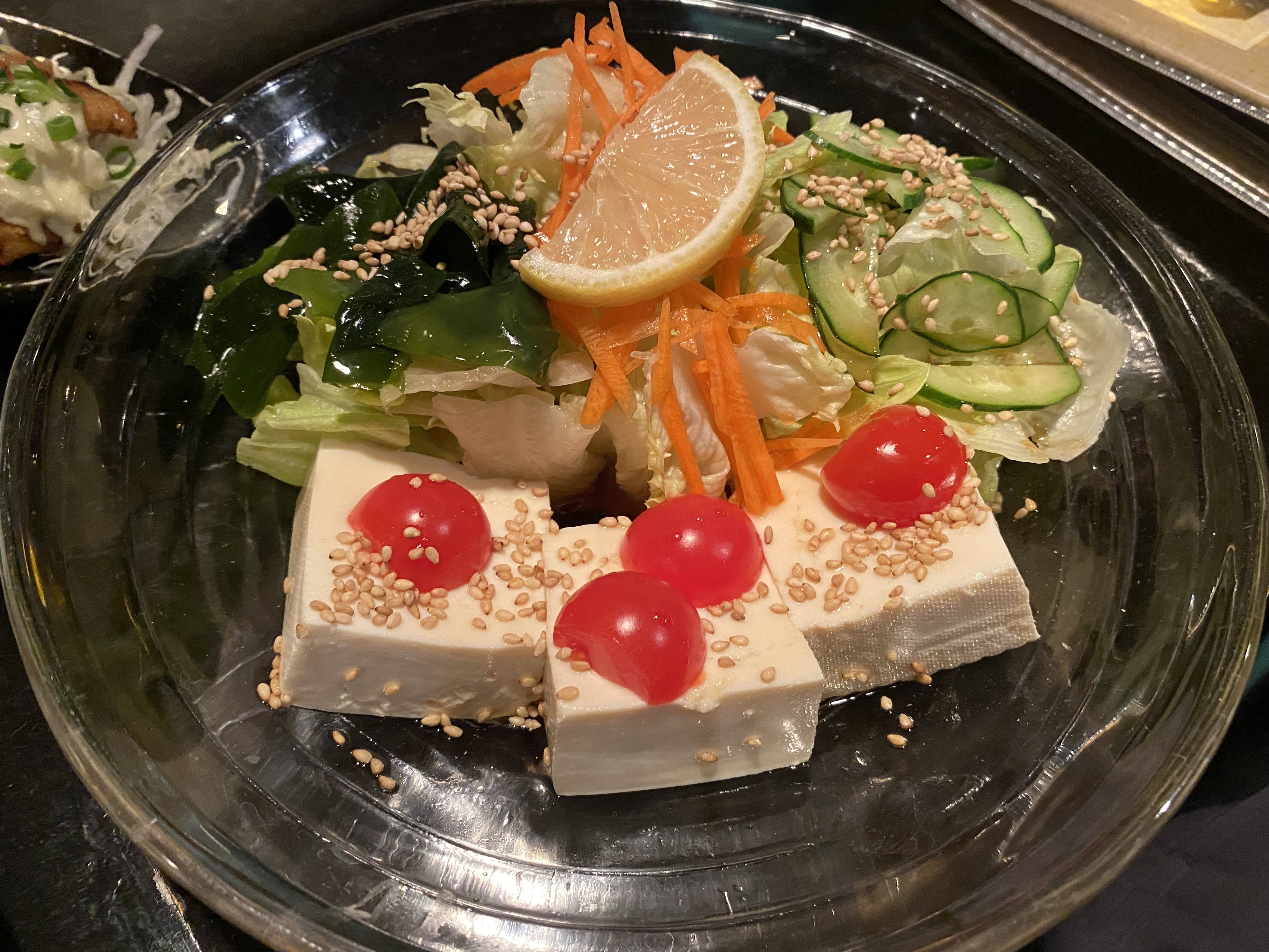 お豆腐がゴロンと乗ったサラダは食べ応え満点。さっぱりとした味付けで箸休めにも◎