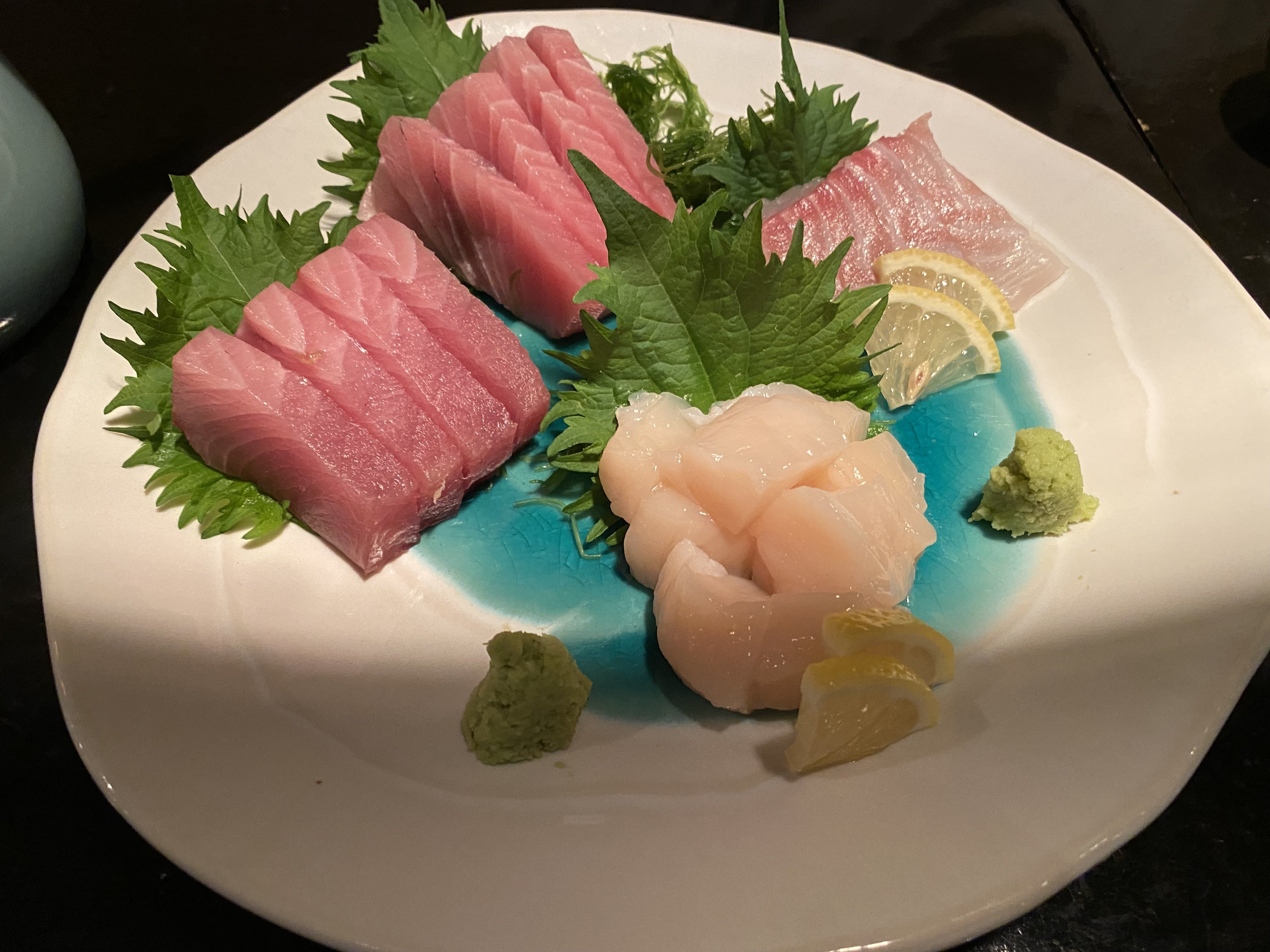 わさび醤油で頂く青い部分は絶品で、もう一度食べたくなること間違いなし!!