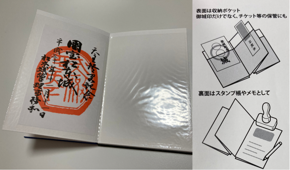 しかし御城印は書置きタイプのため、御城印をご購入して下さったお客様や御城印集めをしているお客様より、松本城公式の御城印帳(クリアポケット付)が欲しいと多くの声を頂きました。