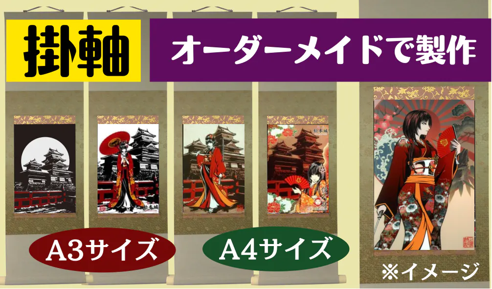 リターンの掛軸は「御城印帳柄 」だけではなく様々な「登久姫イラスト柄」がオーダーメイドで選べます!!