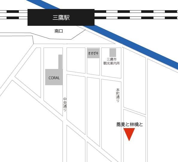 三鷹駅から徒歩5分。南口を出て中央通りから吉祥寺方向へ3本目の本町通りを南下。