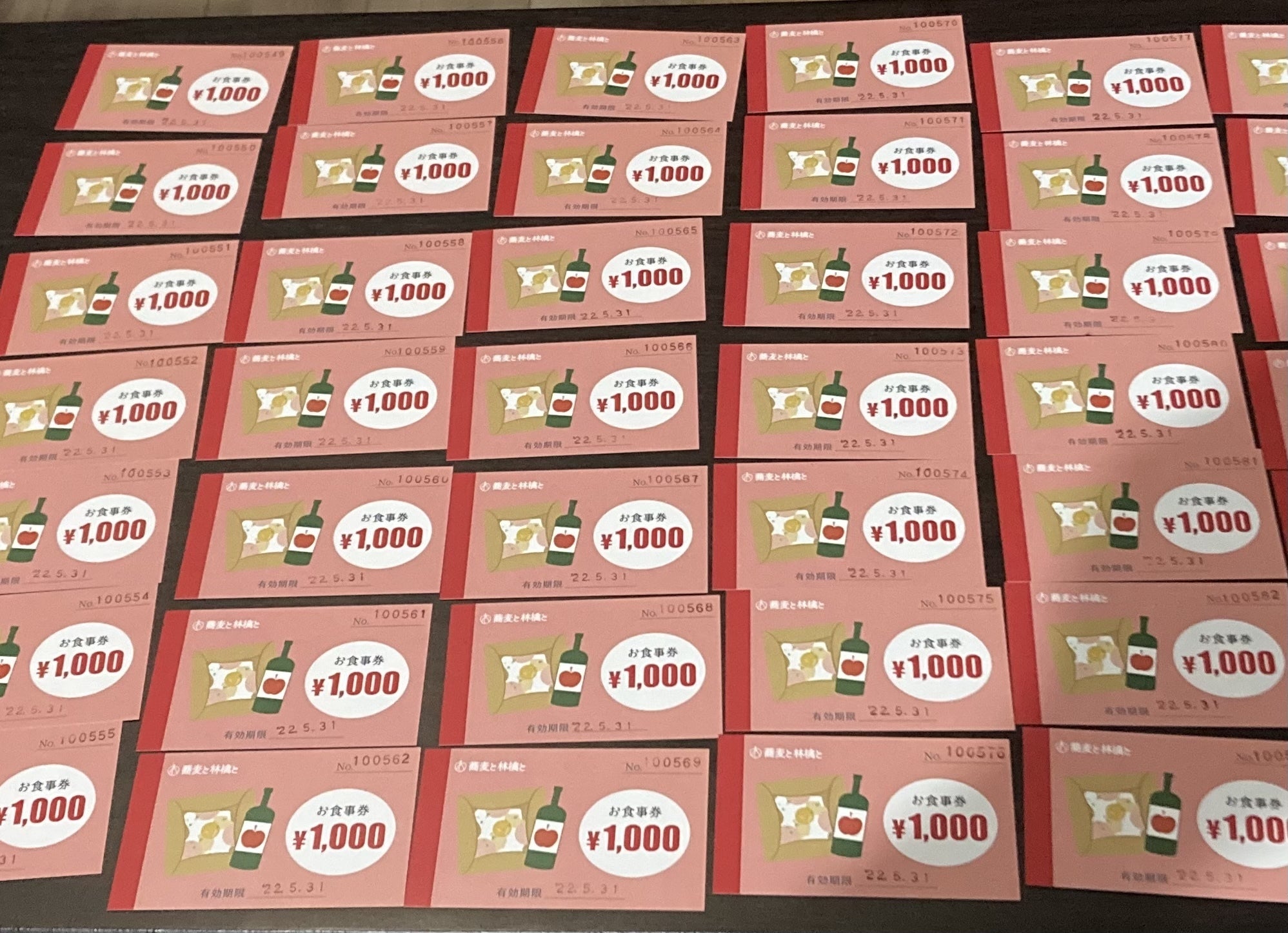 お食事券:2021年11月より2022年5月まで有効(店休日を除く)