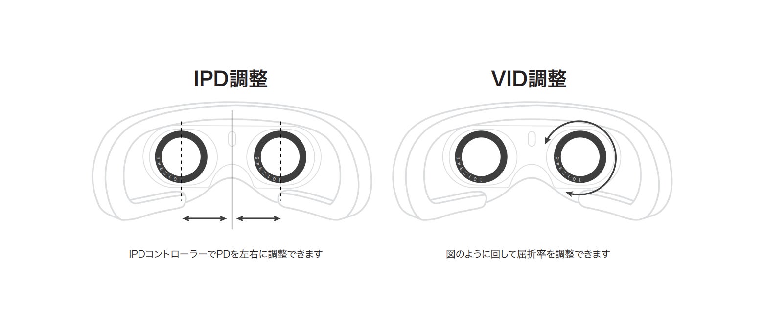 1. 瞳孔距離と視度の調整についての詳細は以下の画像をご参照ください。