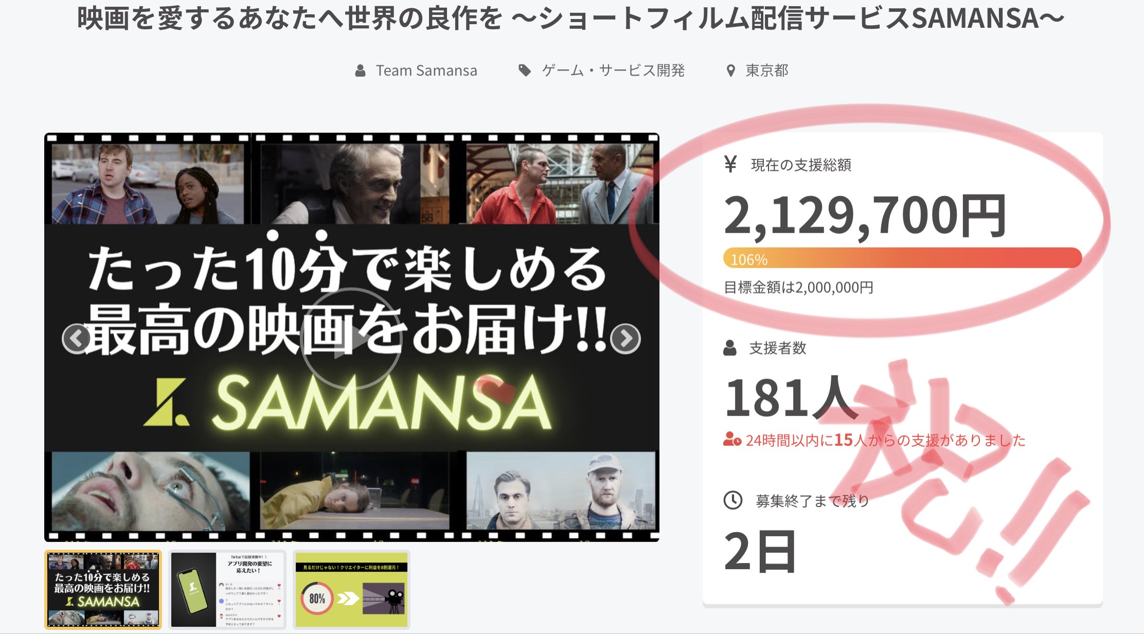 プロジェクトは残り2日となりました!引き続きプロジェクト継続中です!