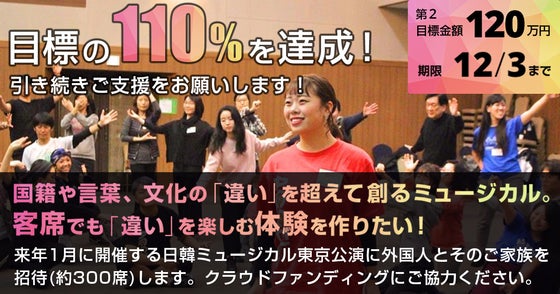 ぜひ日韓市民100人が違いをこえて創るミュージカルをご鑑賞いただき、客席でも「違いを楽しむ」体験をしていただければと願っています!!