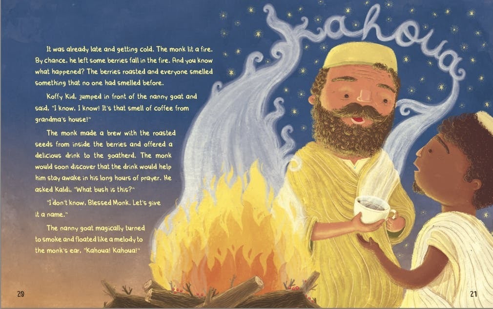 コフィーの冒険は読者をコーヒー発祥の物語にいざなっていきます。コーヒーの由来には諸説ありますが、この絵本を読んで興味を持った方は、日本語でもいくつかコーヒーの歴史を扱った書籍がありますので、ぜひ調べてみてください。