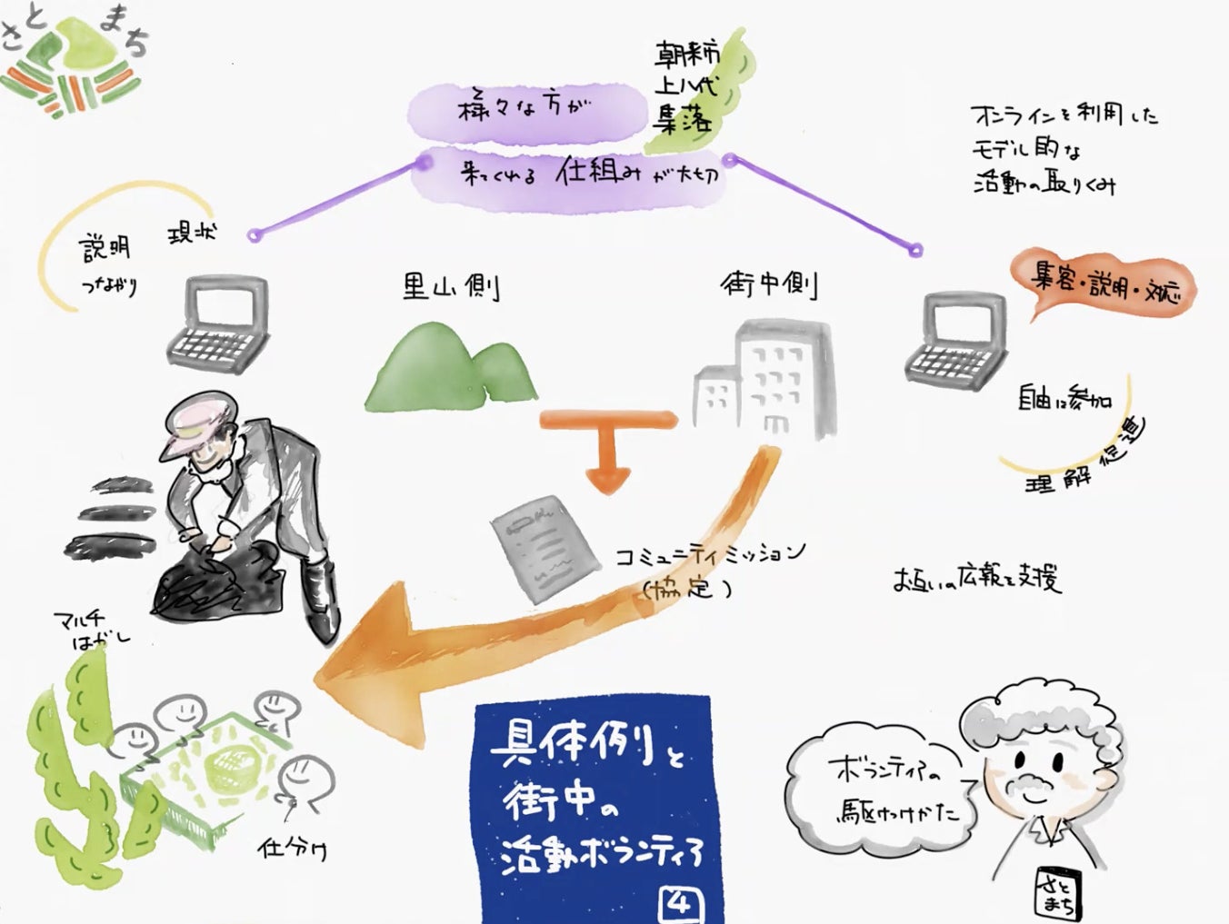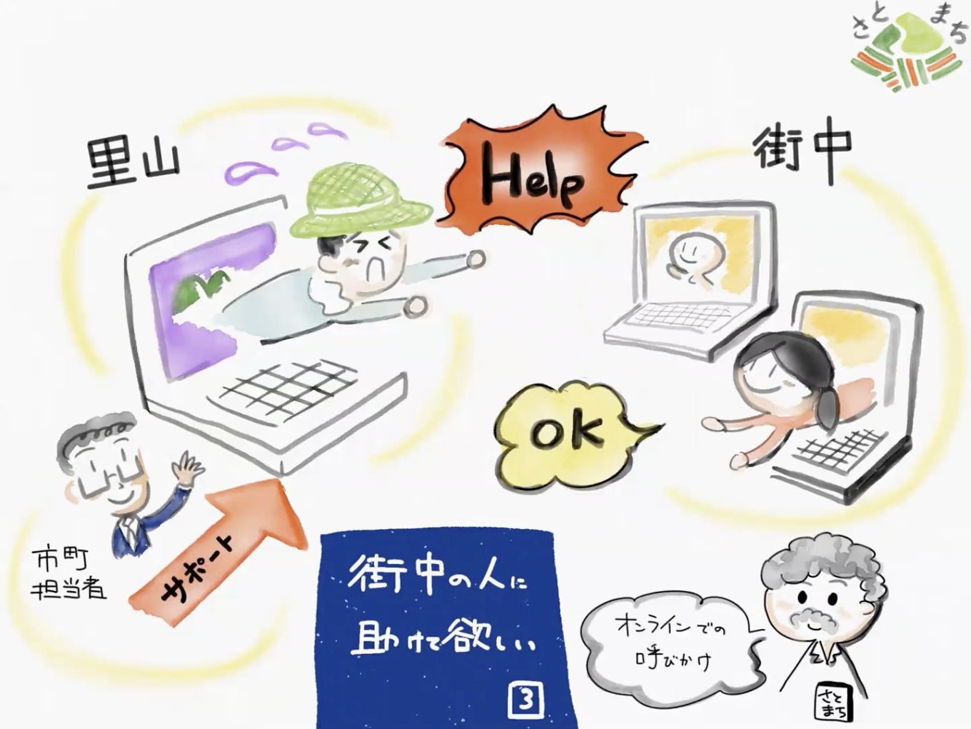 <さとまちガイドラボの概要や、外部人材を含めた仕組みを紹介する紙芝居動画>