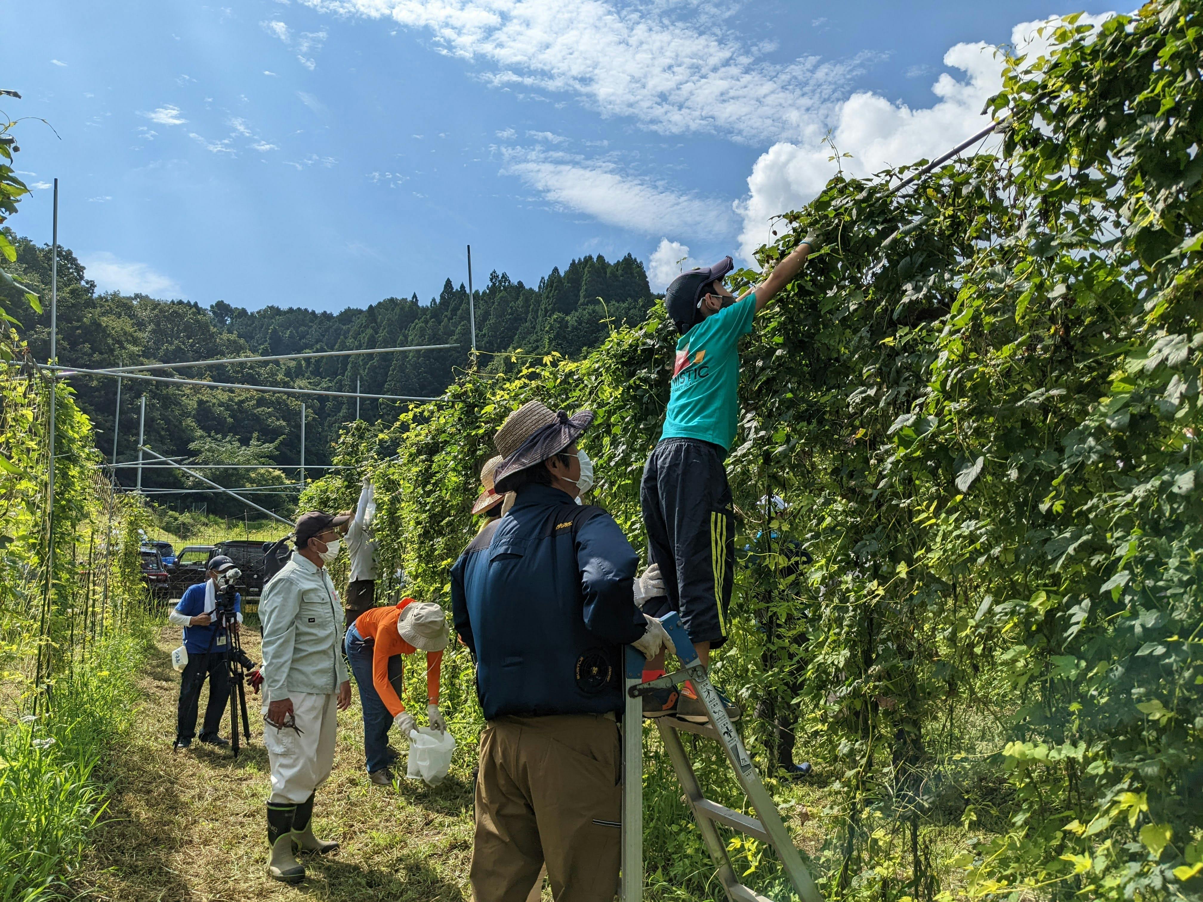 これらを解消するために、アンバサダー団体である「はりまグリーンラボ」と一緒に取り組んできた「はりまホップファーム」にて、佐用町江川ホップの収穫が終了しました。