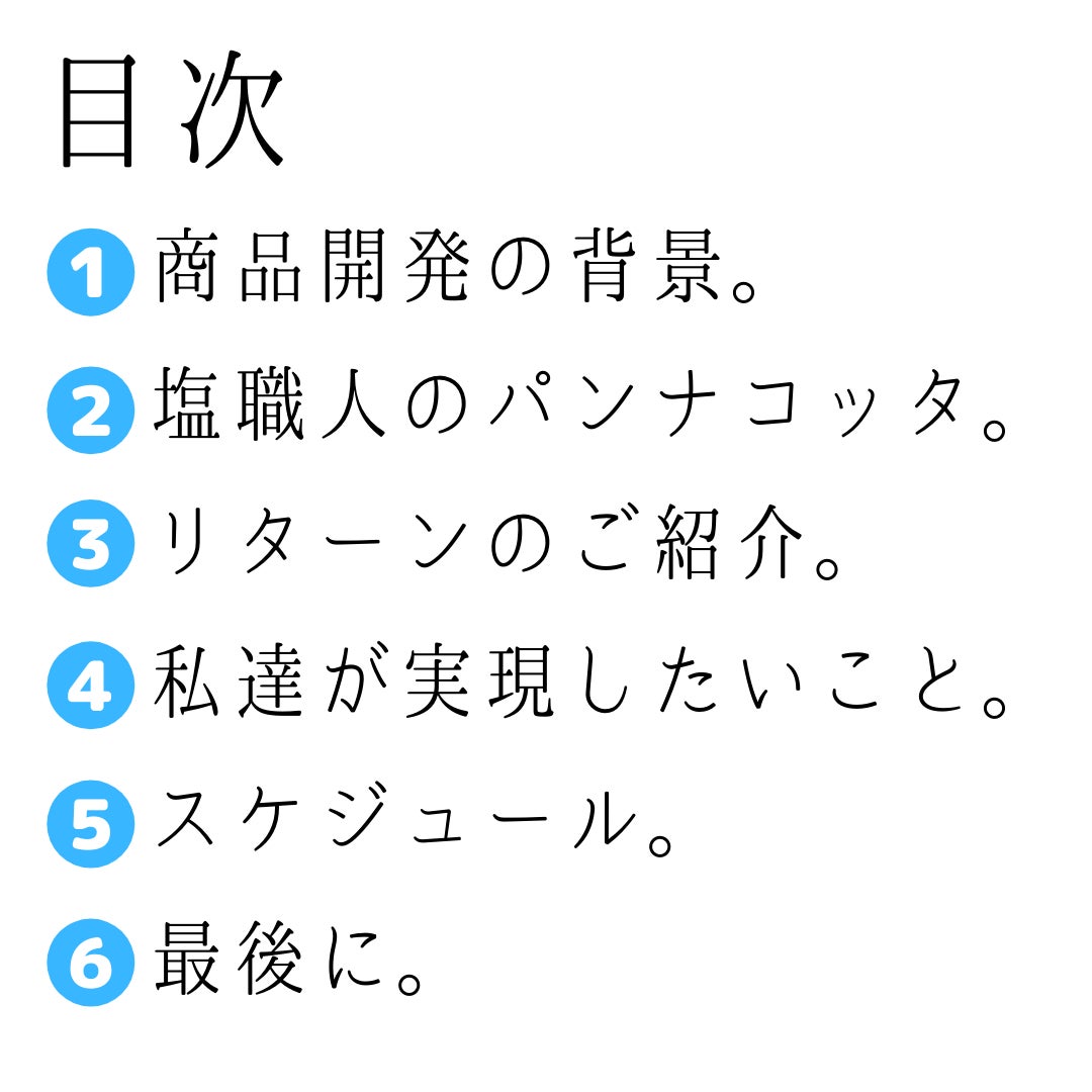 皆様にご好評いただいている「塩職人のパンナコッタ」をもっと多くの方に召し上がってほしいと思い、クラウドファンディングを実施しています。