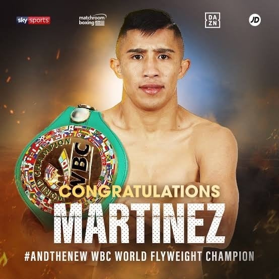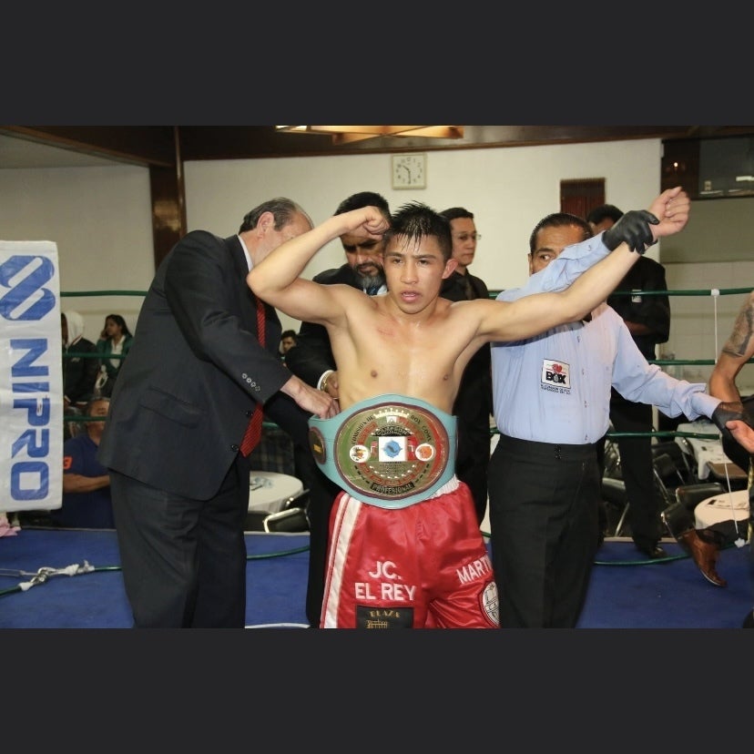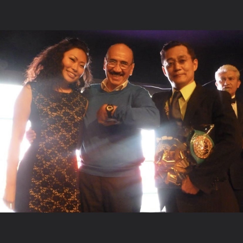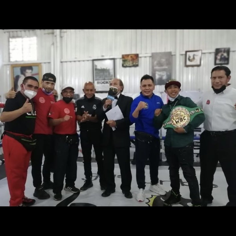 ピントール氏と共に写るベルトを巻いた選手は、現WBC世界フライ級チャンピオンフリオ・セサール・マルティネス選手。