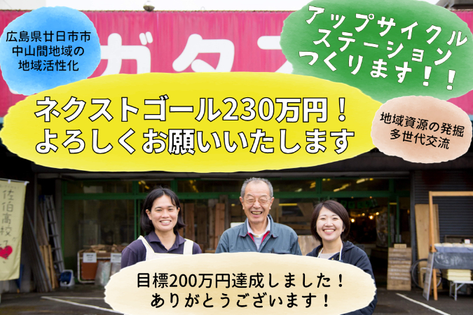 現在の私たちの活動資金は「第27回ひろしまベンチャー助成金エコ特別賞」受賞時にいただいた100万円を基に、資金を出し合っています。ナガスタでの商品の販売だけでは、改修費・活動費を補えない状態のため、店内の雨漏りは現在放置のまま、そして地域の希望であるシェアキッチンや加工所までは手が回らない状態です。そこで、今回クラウドファンディングをして活動の幅を広げることで、さらに地域のアップサイクルを進めていく事、活動を軌道に乗せて、中山間地域でのSDGs活動のモデルになることを目指しています。応援よろしくお願いします。
