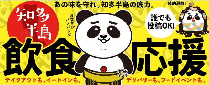 2020/05/30 00:53現在、半田パンダはコロナで打撃を受けている飲食店を応援中です。知多半島内の飲食店オーナー様の書き込みからお客様からの口コミ情報まで、通常の営業形態ではない、現在のテイクアウト情報、取り組み方などを随時発信しています。https://www.facebook.com/groups/chitameshi/実際、知多半島と言っても、住んでいる地域によって情報が足りていないことを実感しました。知多半島内でも食に関しての情報交換が出来ているという、いい意味です。食べログや雑誌などの情報は有名店や観光スポットとして強い飲食店は繰り返し宣伝されているものの、個人店はまだまだ知られていない場所が多い!テイクアウト用ポスターの無料配布なども行って、地域と共に頑張る気パンパンです!現在、フェイスブックページに投稿された情報を元に、ツイッターやインスタグラムでも拡散中です。特にインスタは国内外の隔たりがあまりないSNSですので、英語でも同時に発信中です。アカウント:onaka_panpandaステイホームで名古屋、知多半島メシの魅力を旅行気分で楽しんでもらえたらと思います。国内の皆様方も、穴場も含め、美味しいお店をどんどんアップしていきますので、是非リサーチに利用して下さいね!ちなみに、こちょらはてんむすキャラのえびむす(縁結び)君です。名前が決まっていなかったのですが、命名しました。疫病退散で話題のアマビエとかけて、アマエビに扮したえびむす君。名古屋弁と言えばえびふりゃー。名古屋土産のゆかりせんべい、知多半島土産のえびせんべい。南知多のエビフライで有名なまるはを始め、エビフライはみんな大好き!知多半島でえび活するのが、次の目標です。 もっと見る