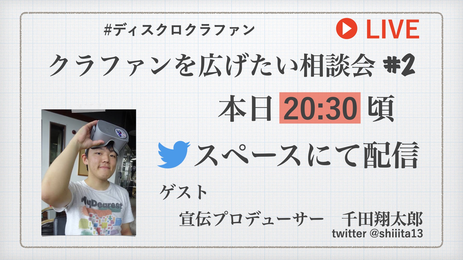 本日20:30~ ディスクロのクラウドファンディングをより広めるためにどうすればいいか!?