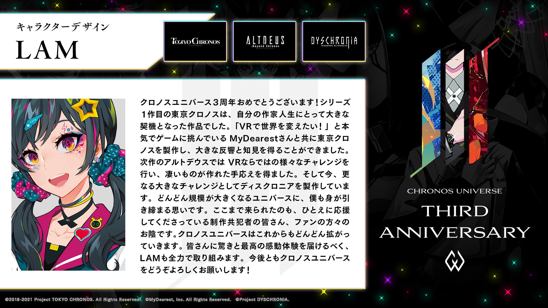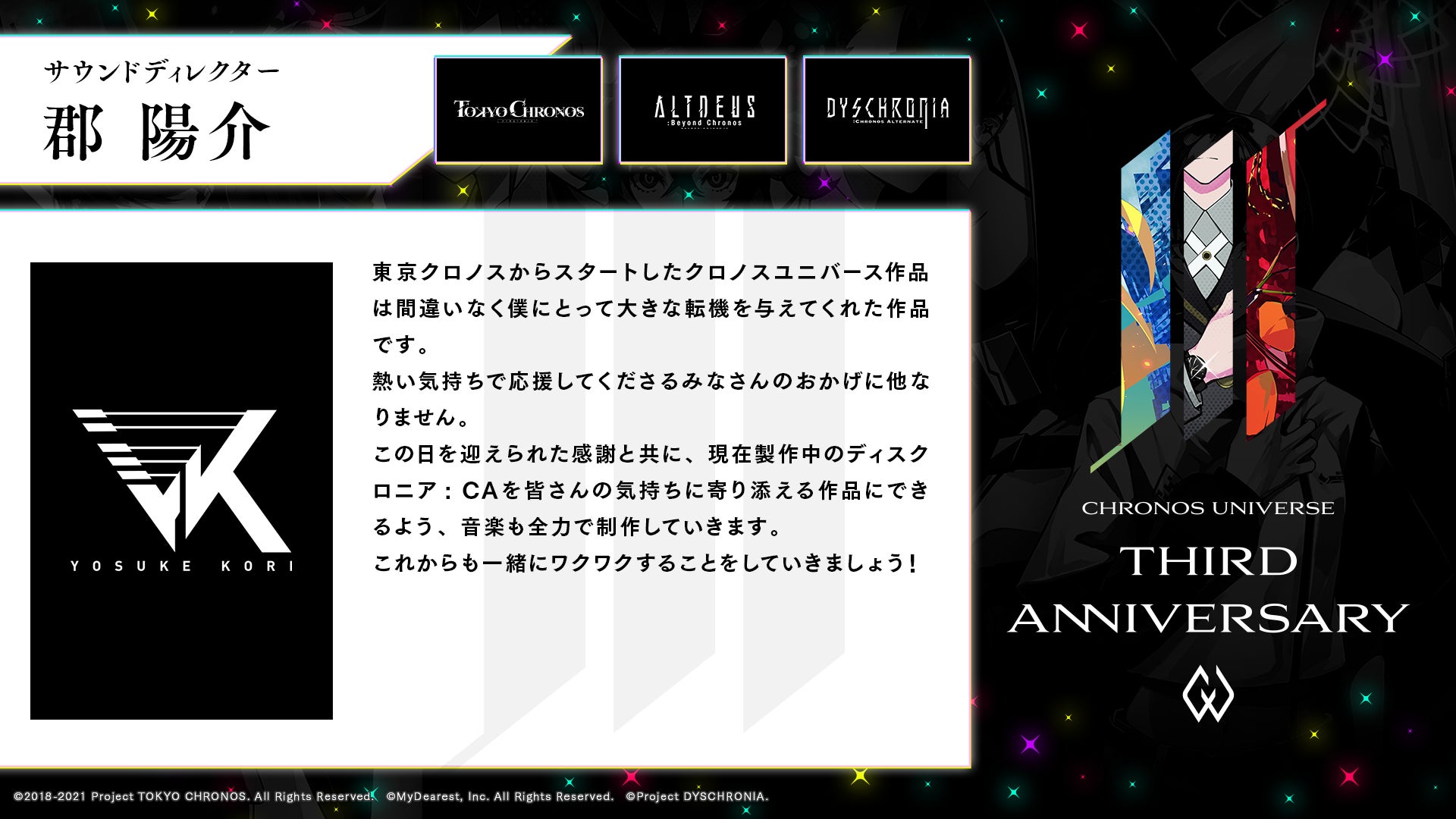 この度、クロノスユニバースは3周年を迎えました。