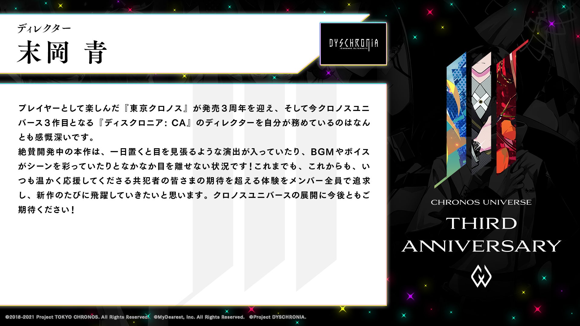 「DYSCHRONIA: Chronos Alternate」に期待してくださっている皆様へ