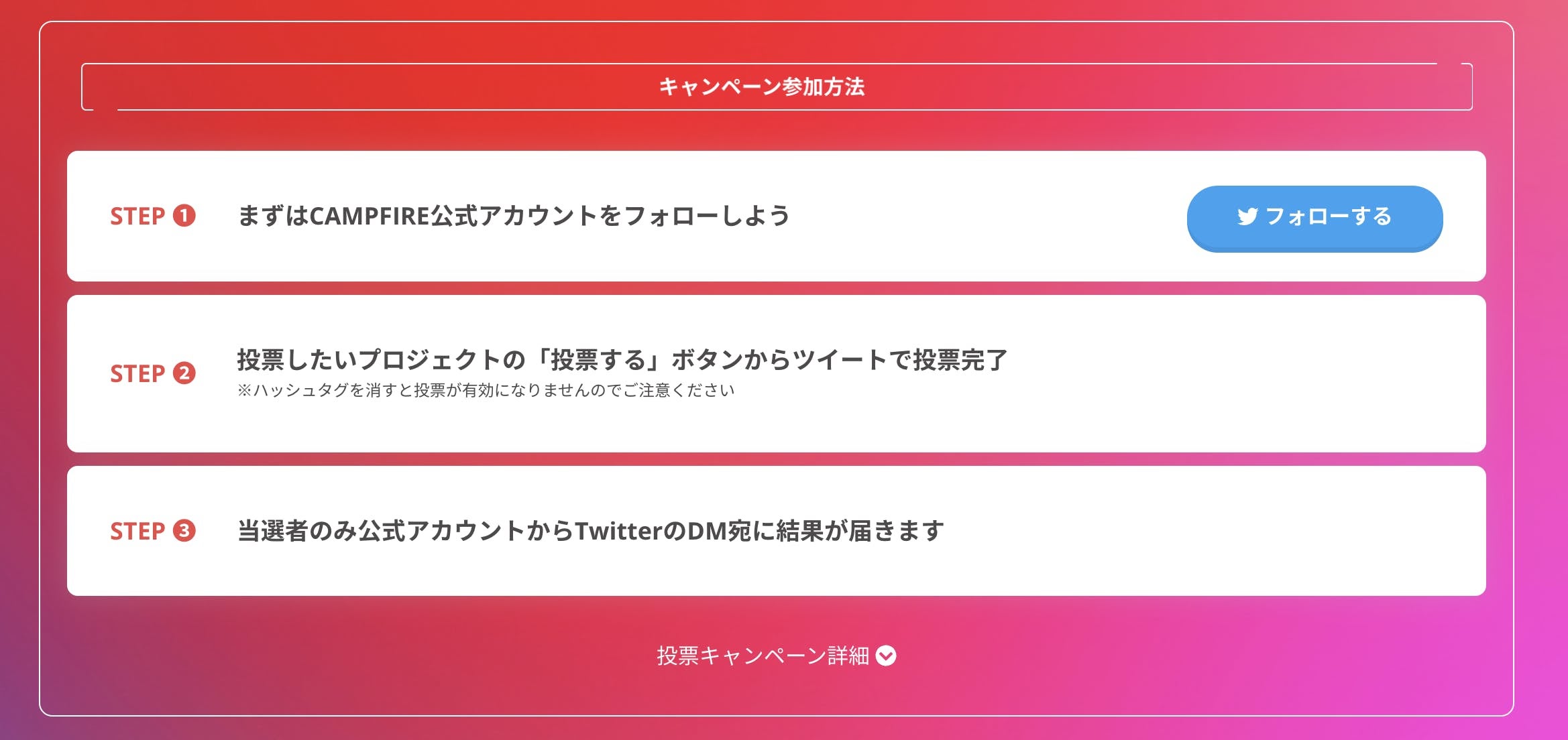 以下、特設ページより今回選ばれた70個星のプロジェクトが観れるのと同時に、投票を行うことができます!!(投票を押すとツイート画面に飛ぶ仕組み)