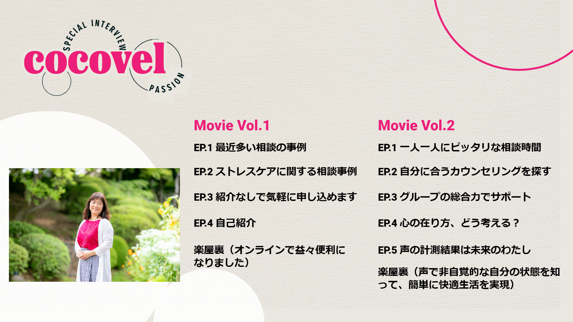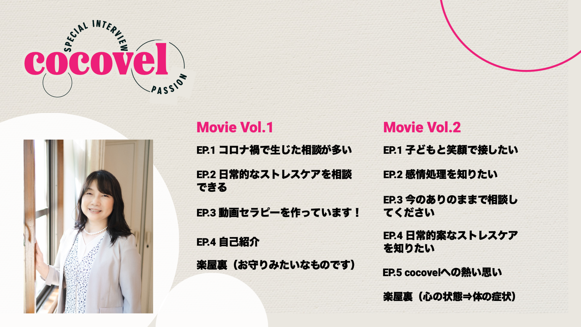 /丹野ゆき先生インタビュー!!丹野ゆき先生にcocovelとカウンセリングに対する熱い思いを語って頂きました!!\カウンセラーのここが知りたい!カウンセラーのカクシンに迫る!連続インタビュー企画の第7回は、丹野ゆき先生の登場です!!とうとう、最終回となりました!!本シリーズをご覧頂き、誠にありがとうございます。東京都を中心に活躍されている丹野ゆき先生!!カウンセリングを自己実現のために活用する人が増えています!!自身のパフォーマンスを改善したり、新しいことへの挑戦などもう一歩踏み出すためにはどうしたらよいのか。こうした悩みに対するカウンセリングを行い、クライアントの変化を促しています!!カウンセリングを有効活用するためにはどうしたよいのか!?せっかくの時間を費やすのだから、その成果は最大限にしたいところです。インタビューではこうしたお悩みにも言及し、「どう変わりたいか」を明確にすることが重要と解説しています。もちろん、ちょっとしたストレスについての相談も随時受け付けています!!好きなことには気が付かない。好きなことを心から楽しむことができない。「好きで始めたのだから」こうした思いを、”重い”にしないことの大切さについても言及しています。また、好感度の高い相手ほど、実はストレスの原因になっている。好きだからこそ不満が溜まってしまう。こうした日常生活や仕事上の「あるある」も是非ご覧ください。毎日スッキリ、楽しく過ごすことのヒントが多くあります。ボディメンテナンスのためにジムに通う。心のメンテナンスのためにカウンセリングを利用する。自身のパフォーマンスを改善するため、こうした人も増えてきています!!忙しい朝だからこそ、早朝のジムとカウンセリングを交互に実施。是非、ご視聴ください!!Vol.1Vol.2カウンセラーインタビューは今回(第7回)で最終回になります!!カウンセラーのカクシンに迫るということで、通常は情報として得ることが難しい内容まで踏み込んでインタビューを行いました!!気にはなるけど、どう利用したらいいの?こんな悩みでも相談できるの?そもそも悩みかどうかも分からないけど相談に乗ってくれるの?といったお悩みも、この動画シリーズをご覧頂くことで解消できるのではないでしょうか。また、カウンセリングは聴く力、ということで、仕事のパフォーマンスを上げたり、日常生活の快適さをアップデートしたりと、今の状態をよりよくする使い方にも多くのコメントを頂きました!!日々の生活をスッキリ・楽しくするためには、何が必要なの?ということで、感情処理についても多くのコメントがありました。サクッと手軽に出来るので、このインタビュー動画を見て頂くだけで、すぐにでも実践できるように思います。もちろん、もっと手法を知りたいという方は是非、先生に連絡してみてください!!さらに、体のメンテナンスでジムに通うように、心のメンテナンスでカウンセリングを利用することにも触れて頂きました!!この辺は目から鱗なところもありますが、よく考えてみると集中力や注意力を高めるには、カウンセリングの手法が有効なんだと改めて思いました。カウンセリングを利用することで、自身を客観的に認知することに繋がる。メタ認知能力の向上に繋がります。メタ認知について本稿では詳細に触れませんが、”よいこと”なのは間違いありません。そして、多くの人が気になる「よいカウンセラーを探すには?」「先生の変更はできるの?」といった、なかなかメディア等では触れられない(インターネットを検索しても出てこない)情報にも多くのコメントを頂くことができました!!変更はいつでも出来ますので、気になる先生がいたら、お気軽にアクセスしてみてください。