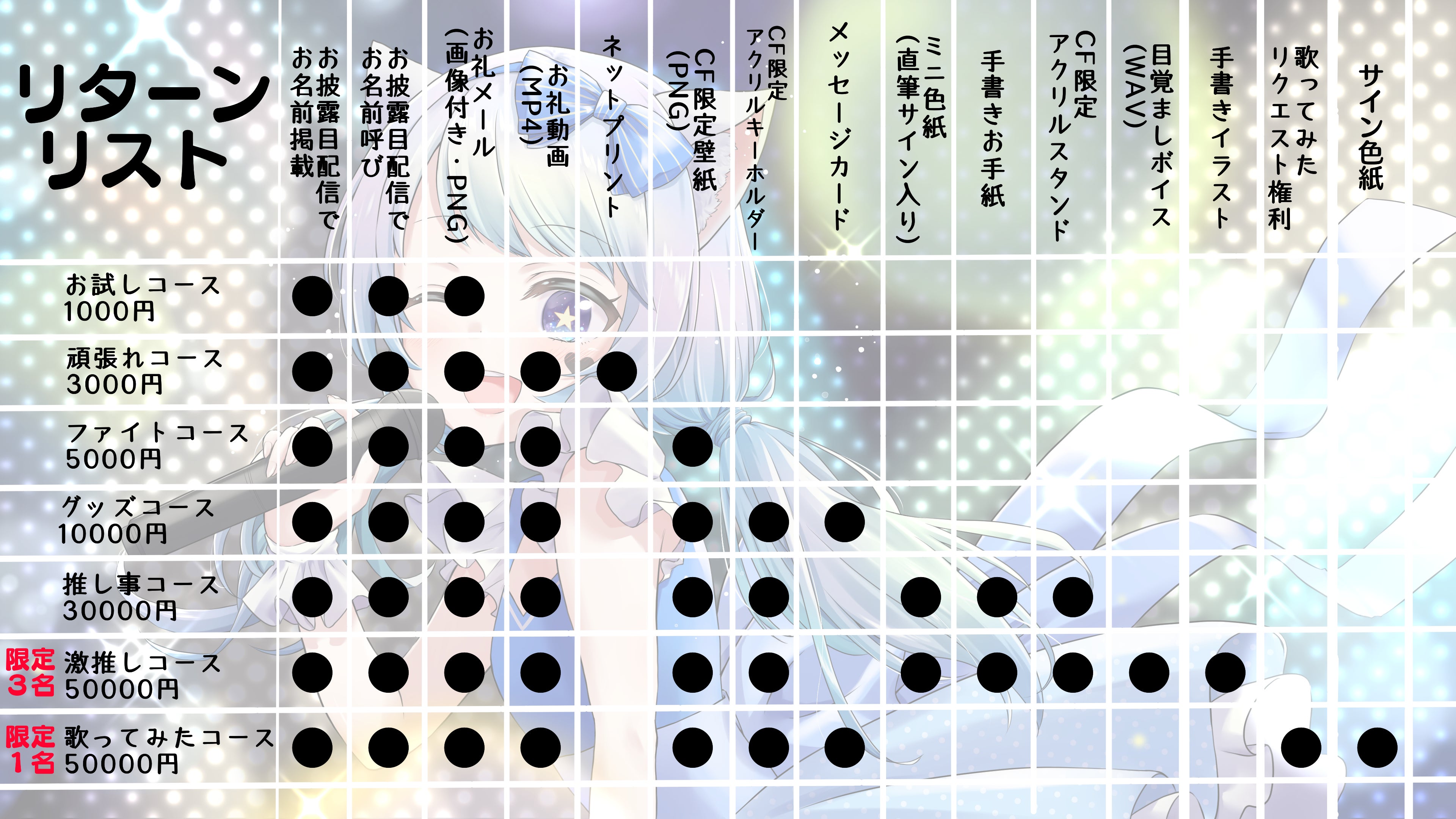 ・第2弾歌ってみたの曲をリクエストできる権利です。