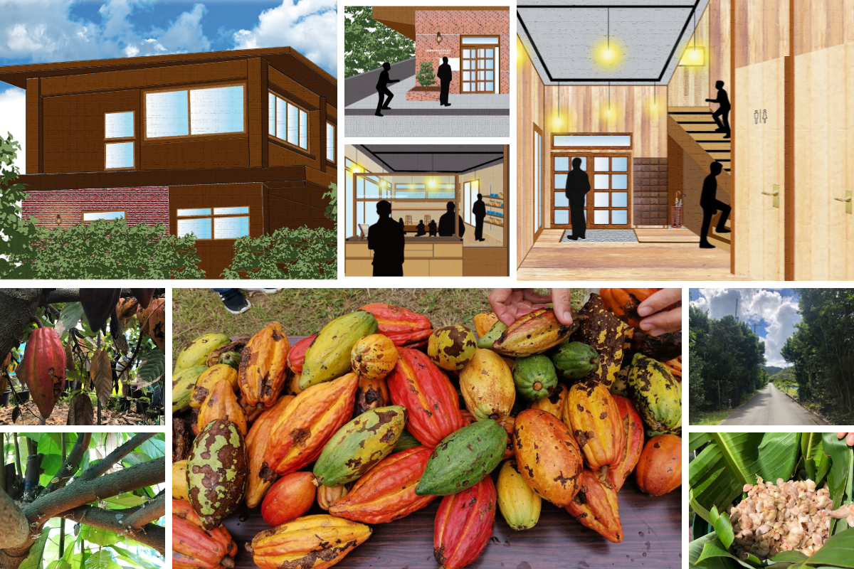 カカオを栽培する畑まで歩いて3分ほど、カカオ栽培の様子も日々見ることができ、そこで収穫したカカオを発酵、乾燥させ、チョコレート作りまで歩いていける距離で体験できる、国内のみならず世界的にも貴重な場所を作ります。