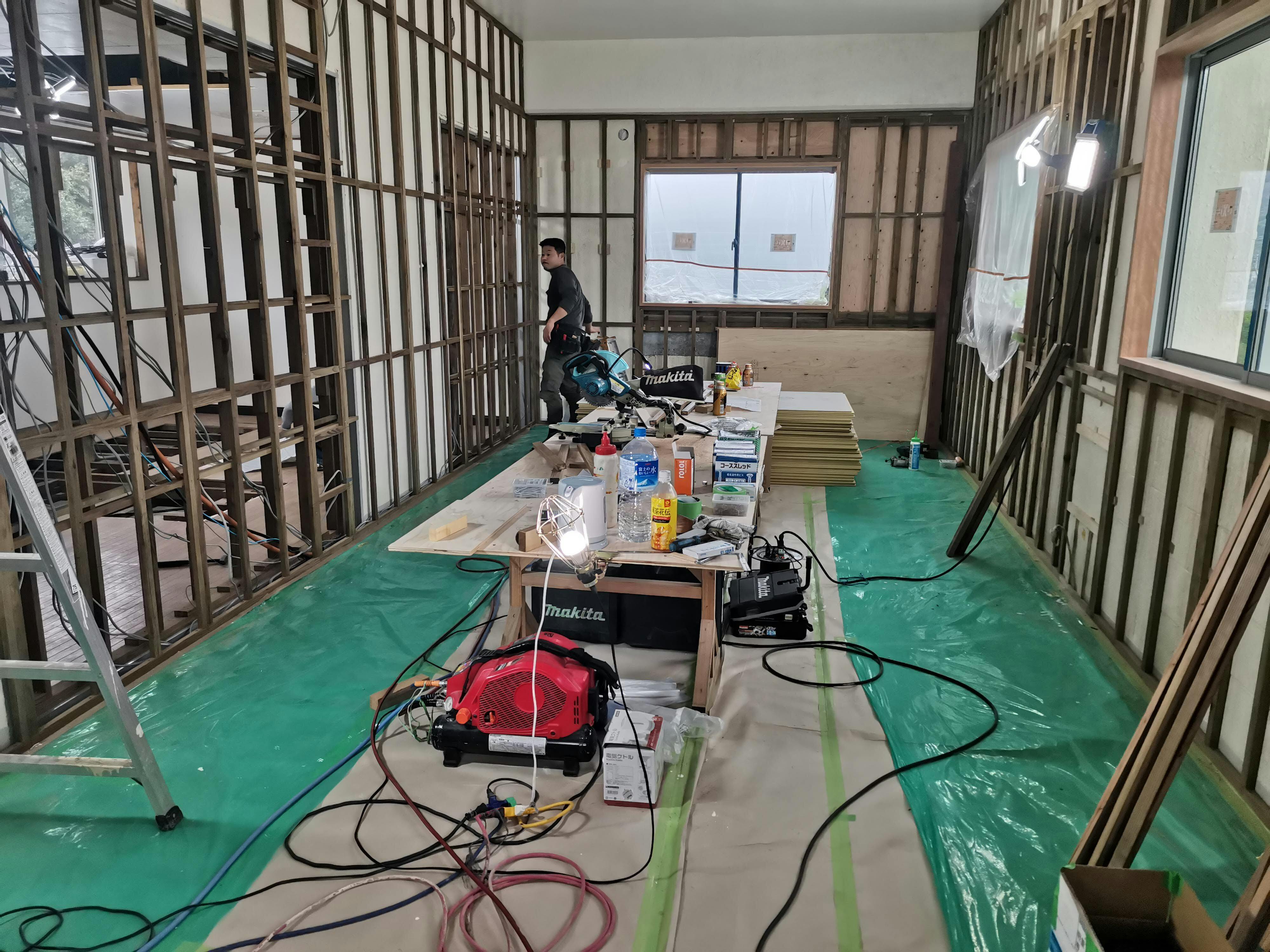 元々ベランダだった場所は景色も風通しも良く、個人的にとても気に入っていた場所です。ここの景色と空気を感じてもらいたいと思い、客席を広く取り、なんとテラス席までつくっていただいています。出来上がりが楽しみで仕方ありません!