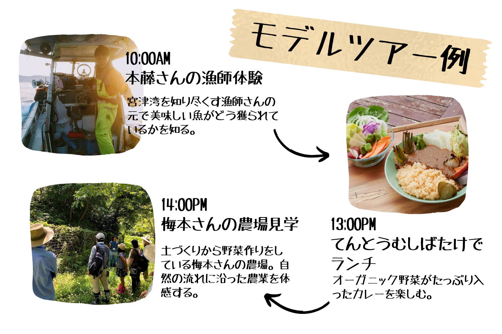 1日で丹後の生産者さんを2箇所訪問するオリジナルツアーを立案させていただき、当日ツアーのアテンドをさせていただきます。