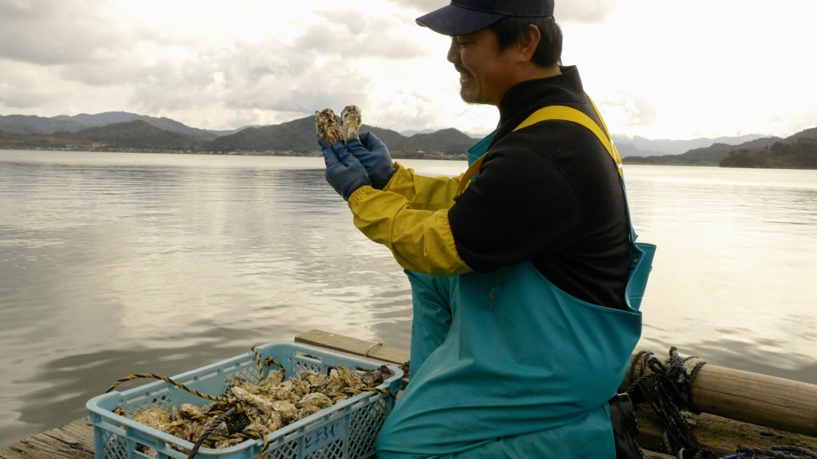 天橋立の内海に位置する阿蘇海の漁師、村上さん。