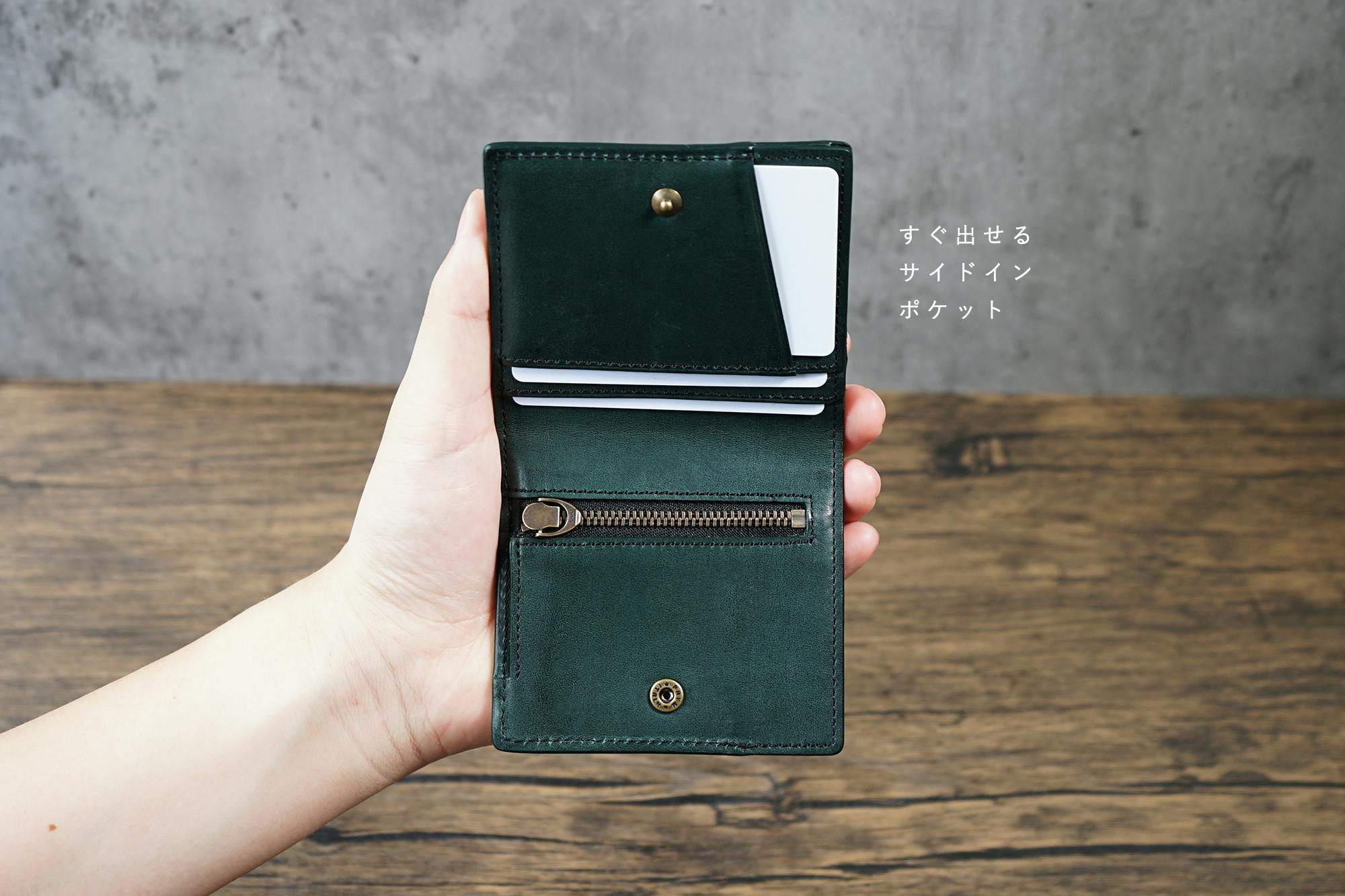 両サイドには切り込みがあり、コンパクトでもお札の出し入れがしやすいように工夫しています。