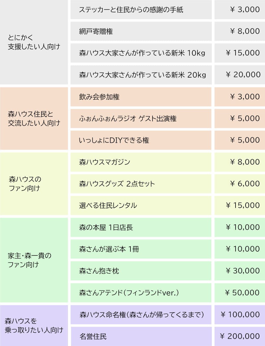 リターンにはそんな森ハウス住民とかかわれるものも多く用意しました。「森一貴」だけではない森ハウスを知ってもらえる、よい機会なのではないかと思っています。