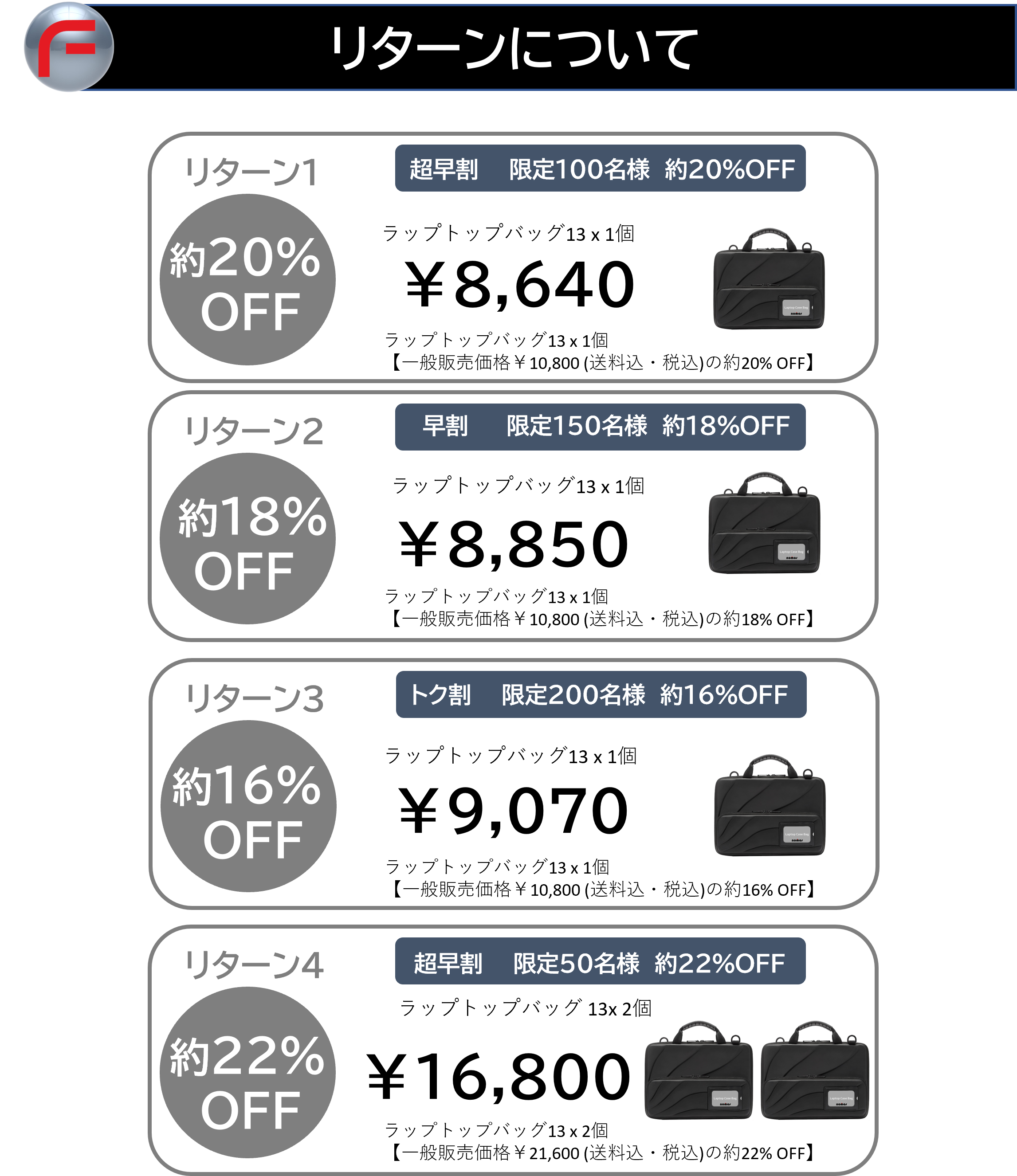 リターンの商品内容は、お届けする商品内容に記載の通り。リターン価格は、送料込み(全国一律)、消費税込みとなります。