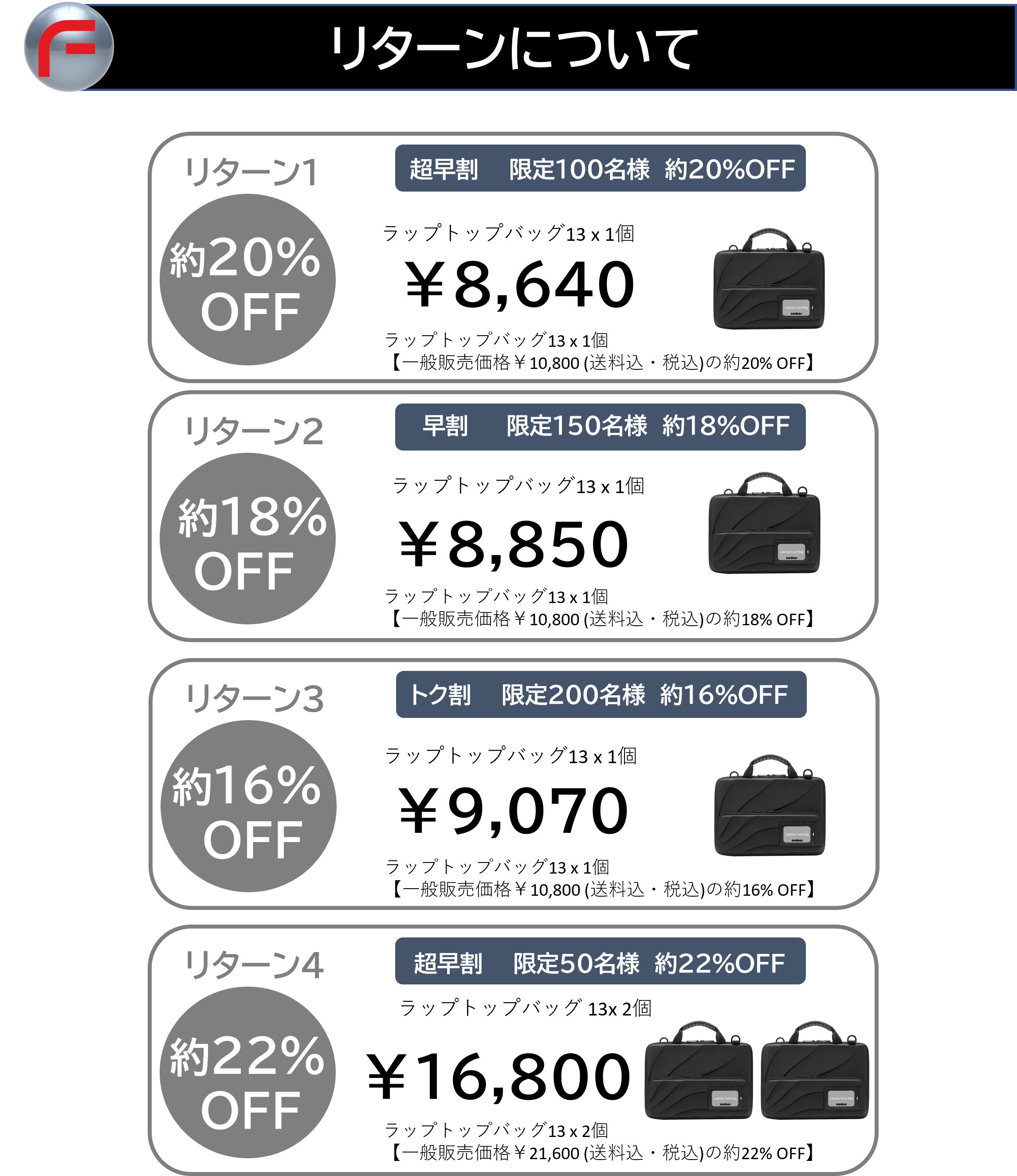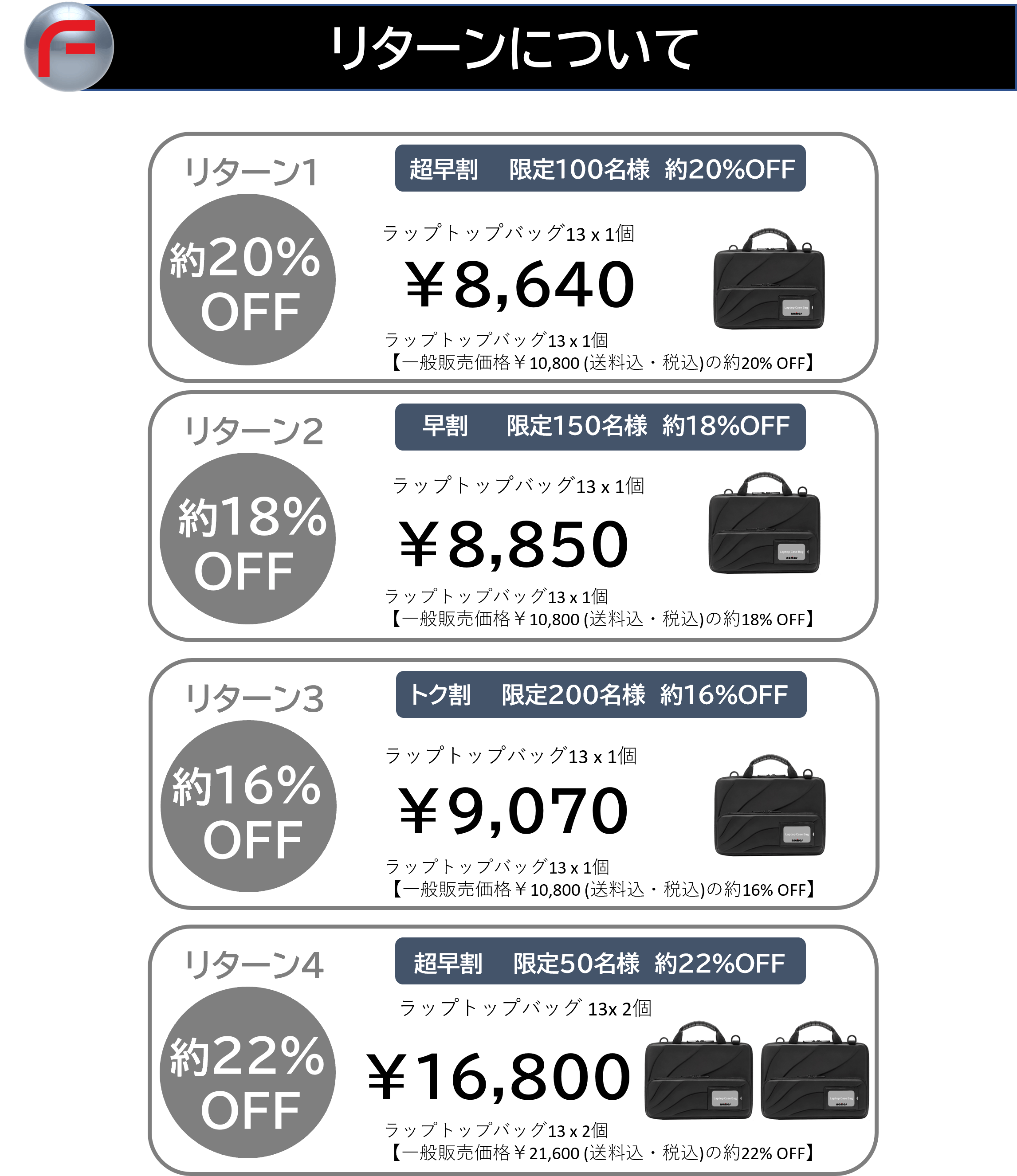 ※一般販売時に、量産状況によっては一般販売予定価格が変わることもあります。