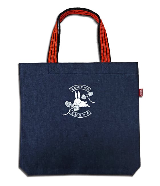 今回のクラウドファンディングのために作りました、限定柄の倉敷屋のデニムバッグです。
