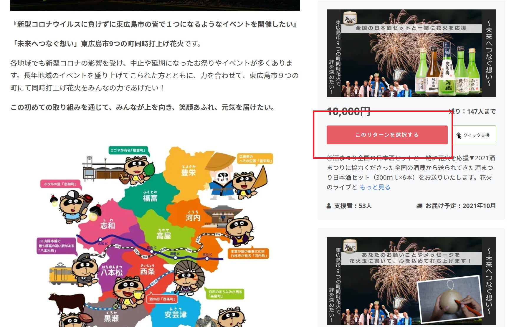 ①支援希望のリターンを選択