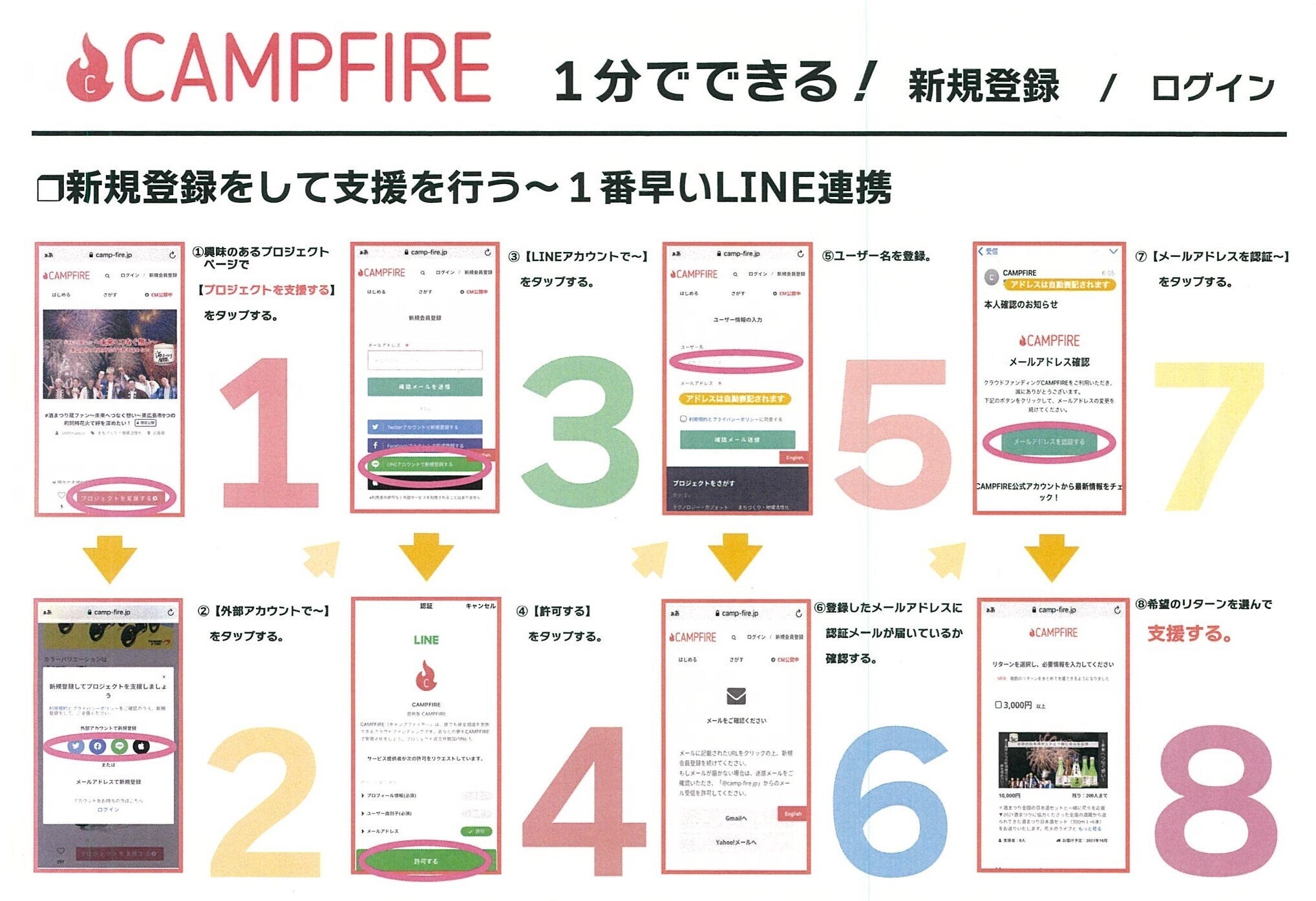 CAMPFIREでの支援方法が分かりにくい、初めてという方向けに、