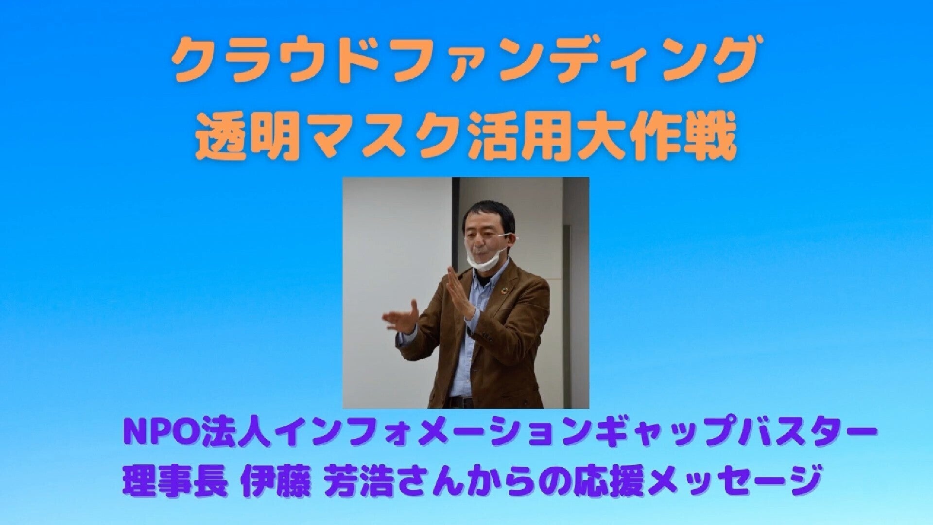 本日は、今回の透明マスク活用大作戦!を協賛してくださっているNPO法人インフォメーションギャップバスターの理事長の伊藤芳浩さまより応援メッセージ動画をいただきました。