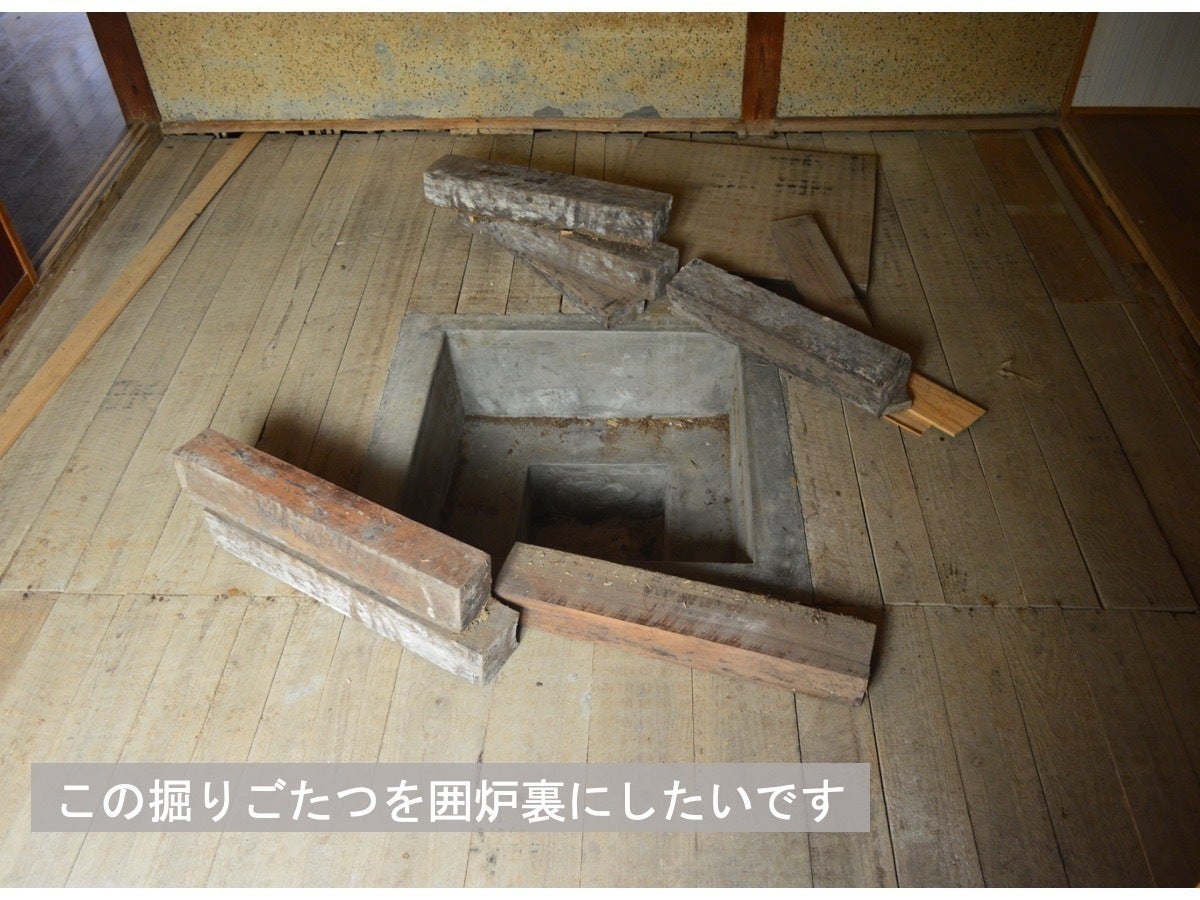 こちらは囲炉裏に改装したいと考えている掘り炬燵です。床の下から出てきました。