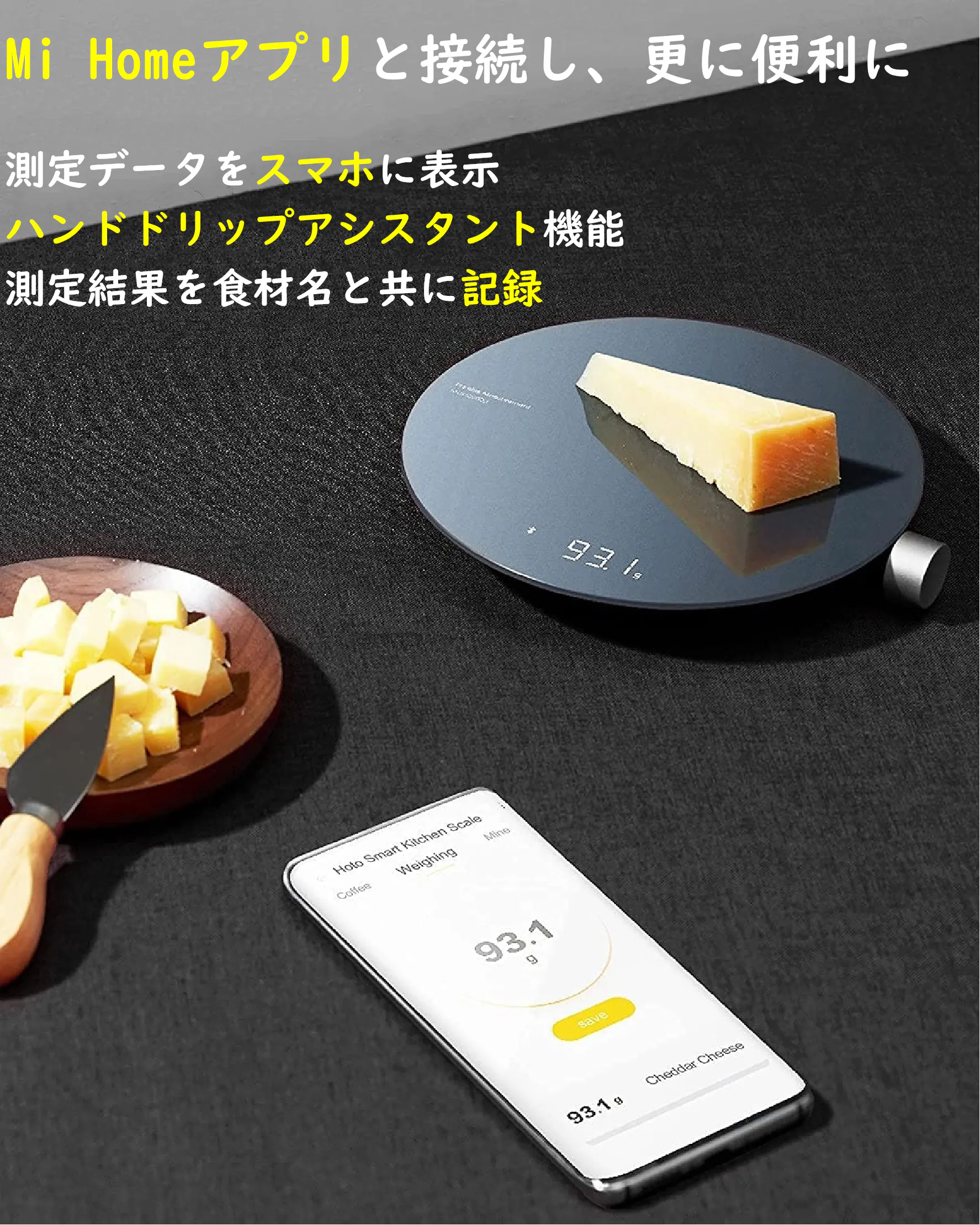 ・スマホアプリ"Mi Home"を使用しスケールとスマホを接続することで、測定結果をアプリ内に保存し、共有も可能になります。