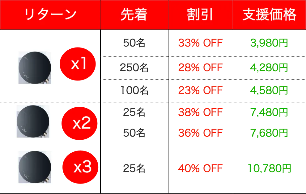 ※想定を上回る皆様からご支援を頂き、量産体制を更に充実させることができた場合、一般販売価格が予定価格を下回る可能性がございます。