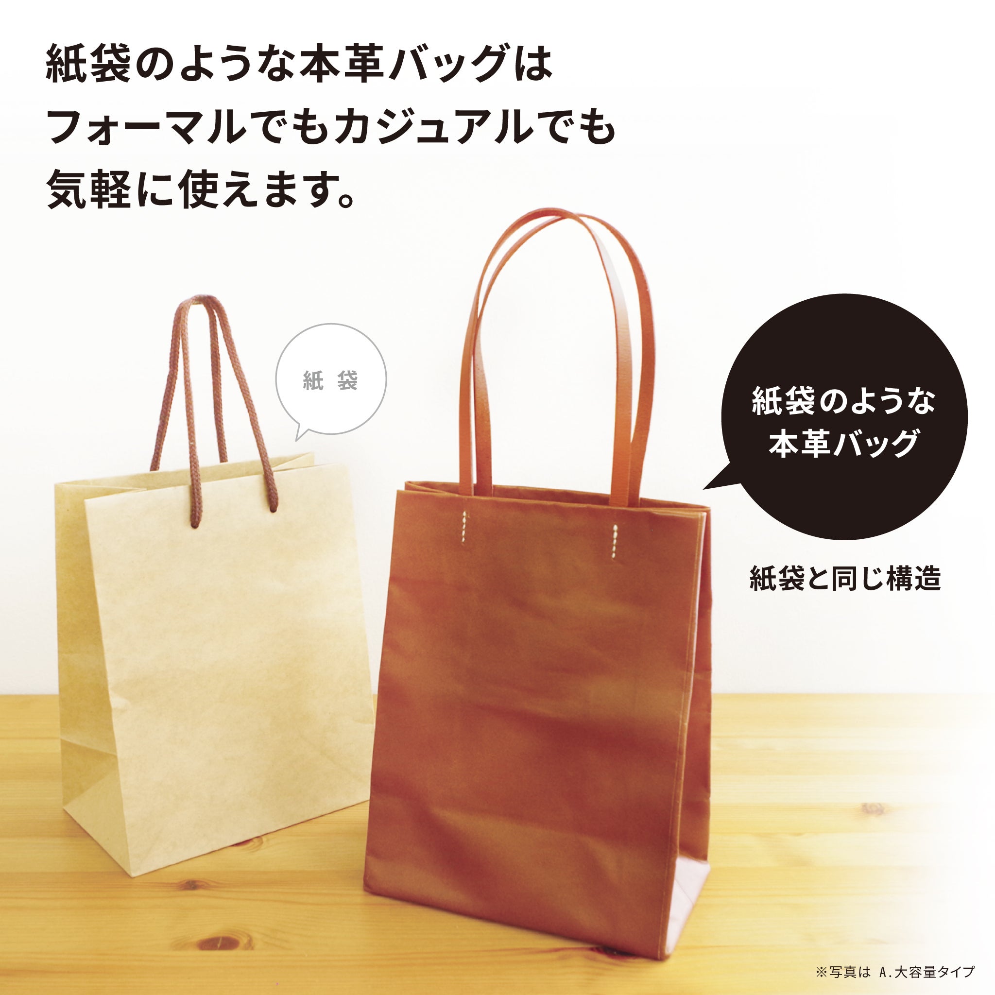 紙袋ような革バッグ B.機能性タイプ