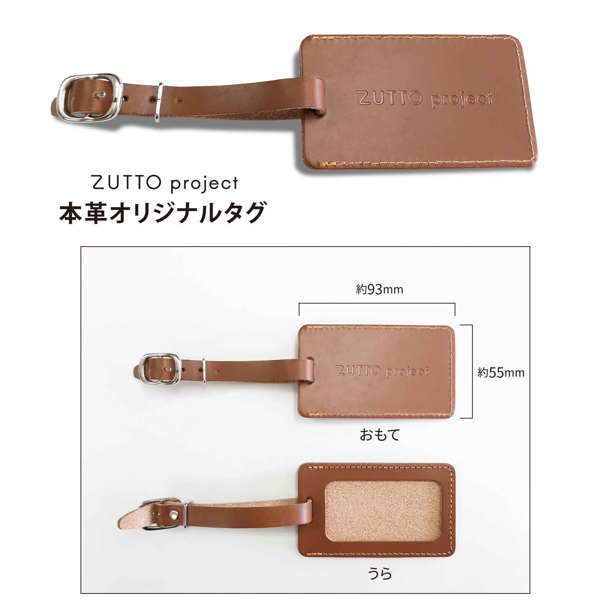 うら面は ネーム等が表記できるように窓枠を設けて(画像参照)、おもて面には「ZUTTO project」を刻印させていただいております。
