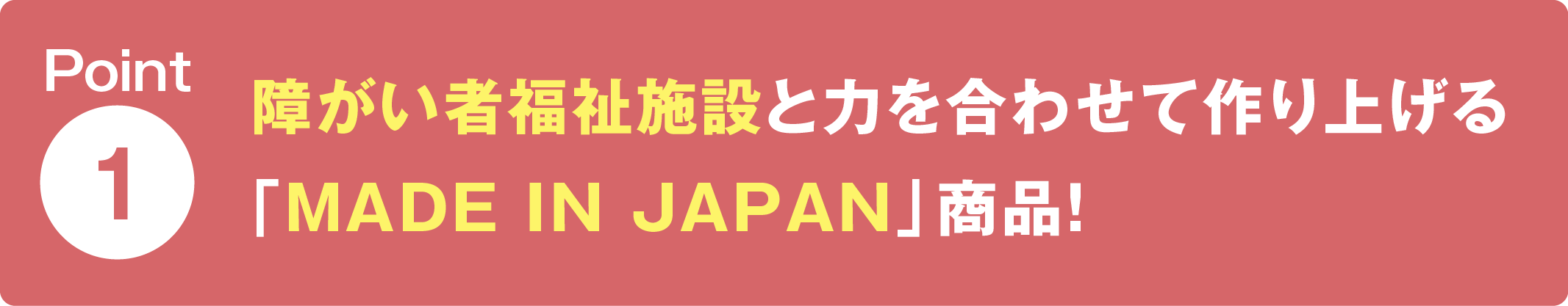 また、製作においては「MADE IN JAPAN」にこだわり、みんなが平等に働けるよう、障がい者福祉施設 と力を合わせて取り組みます。