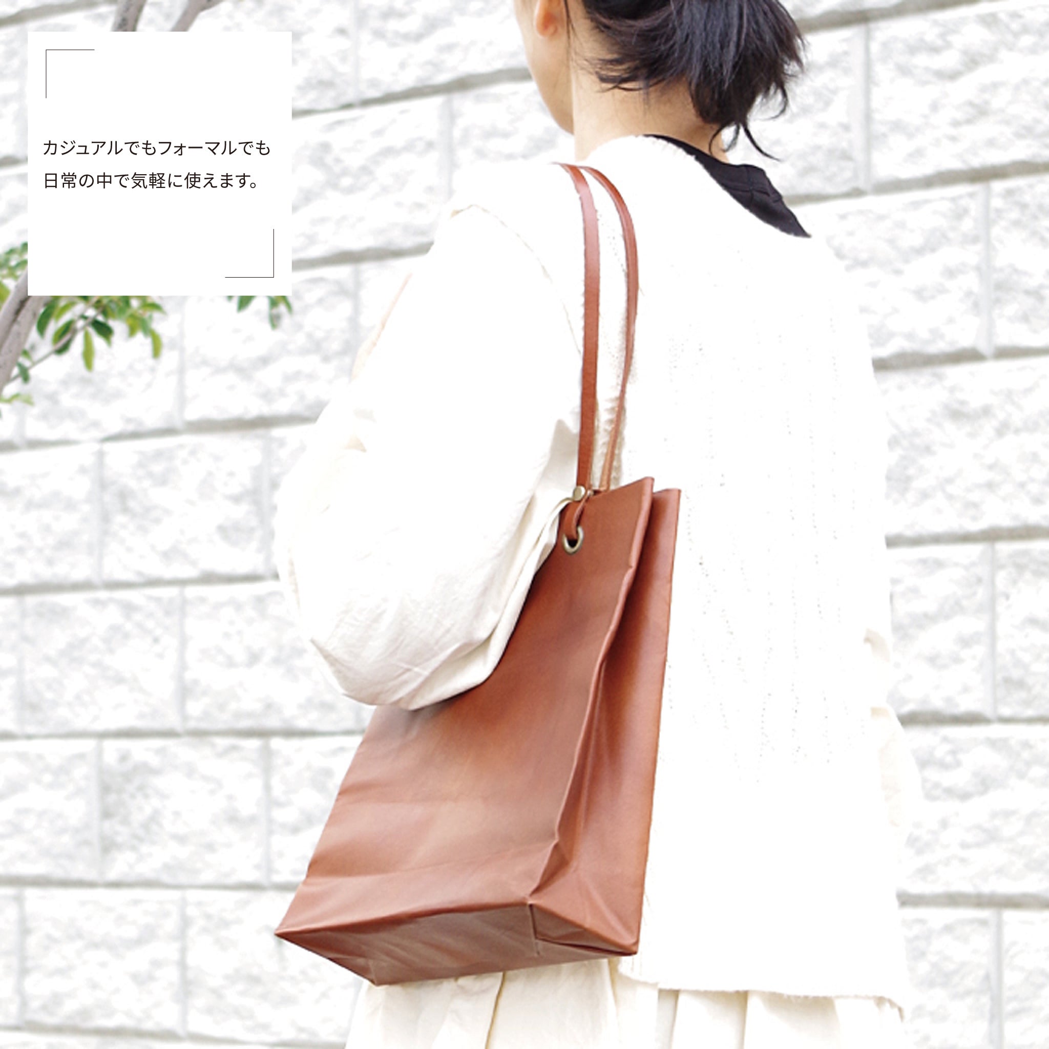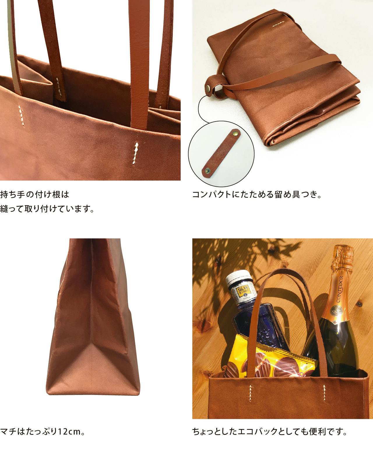 普段使いに! ちょっとお洒落に! 派手さがなくてもフォーマルにも合う! 「お洒落で紙袋のような 本革のバッグは出来ないかな!」と考え、本牛革、国内生産にこだわりました。ずっと使い続けたくなります。