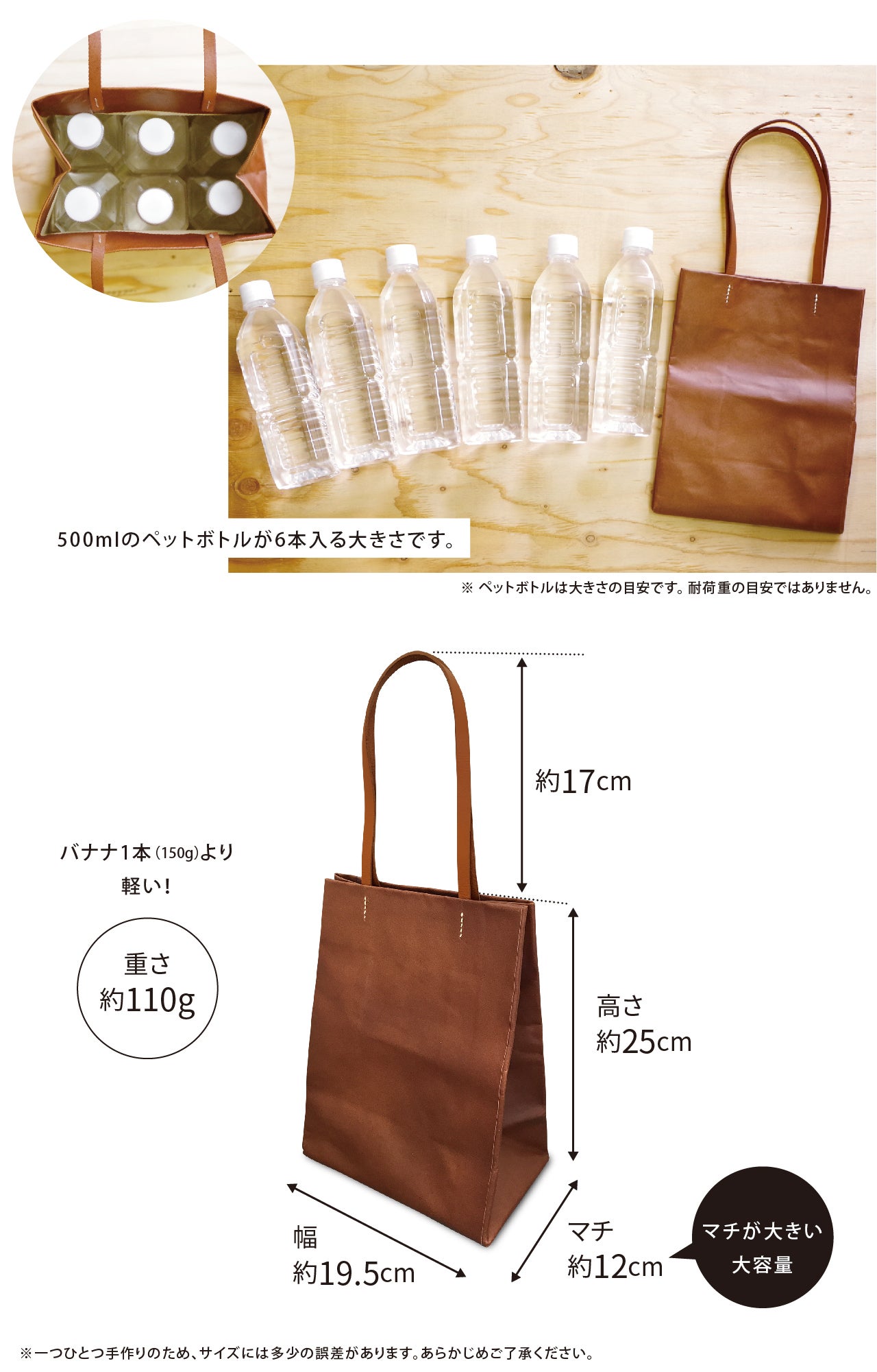 ※紙袋のような軽さを実現するため、極力縫製を減らし、接着加工による張り合せでバッグを軽量化いたしました。