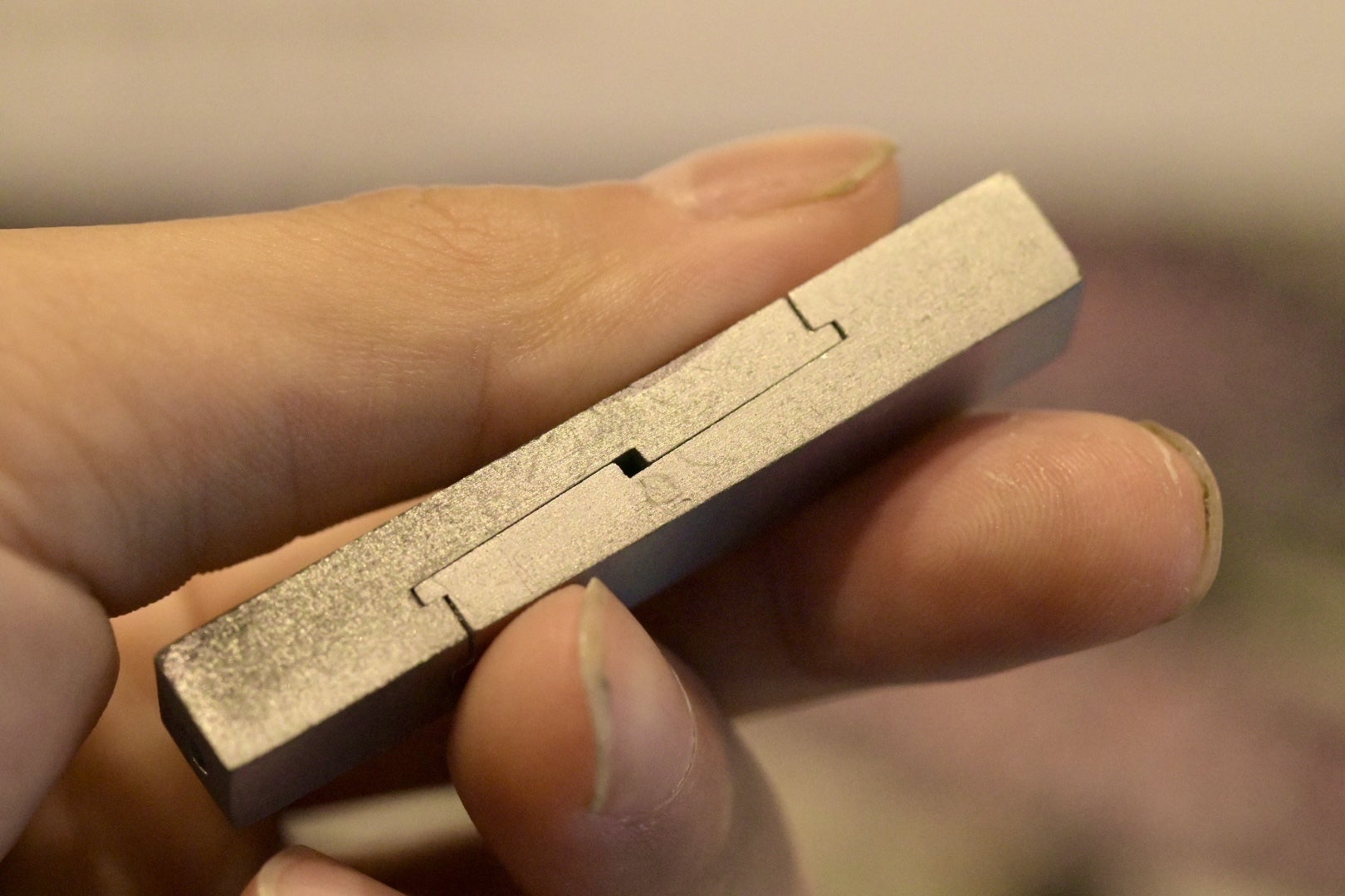 職人が切削加工で作り上げた、パーツとパーツがぴったり重なり合う