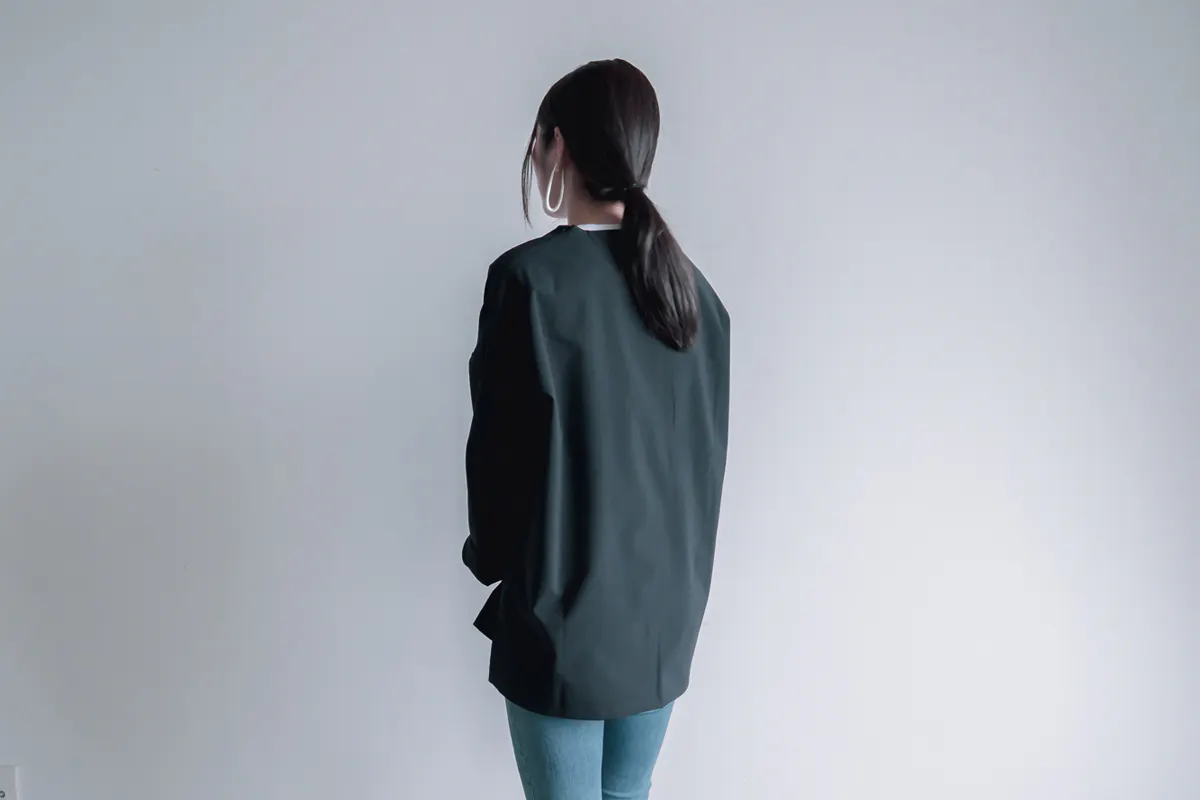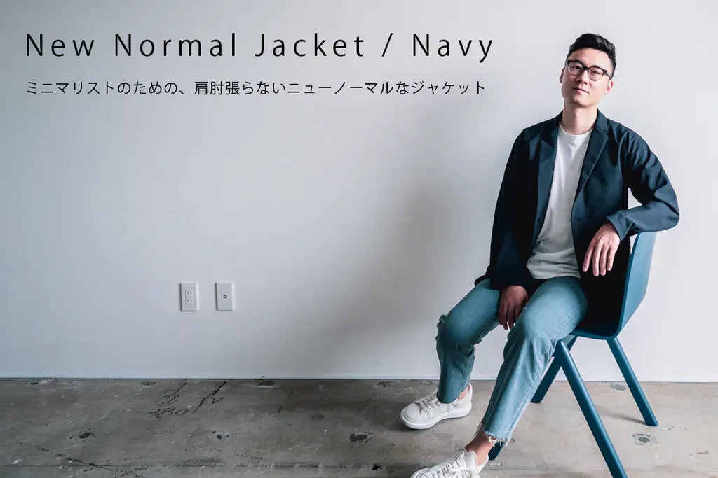 同じ素材をつかった2つボタンのジャケット「New Normal Jacket / Navy」のクラウドファンディングも10月11日(月)まで実施しております。よろしければ、ご覧ください。